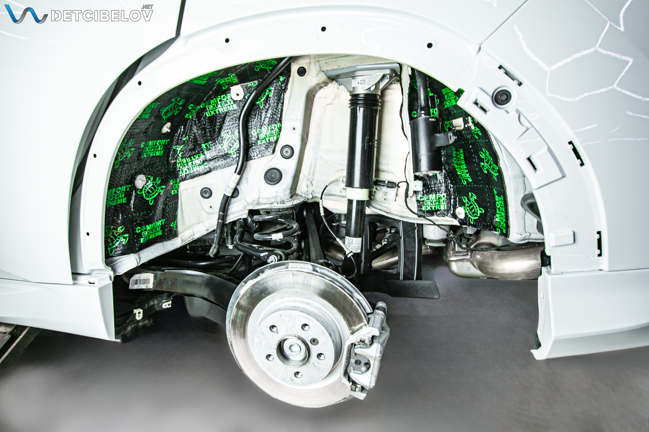 • Никаких компромиссов! Только топовые материалы последнего поколения от ТМ "Comfort mat" с максимальной эффективностью и максимальным количеством слоев. Также использование вибродемпфирующих материалов высокой жесткости с разогревом в печи и дополнительной напыляемой шумоизоляцией для колесных арок.