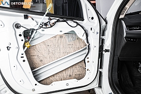 • Самая легкая шумоизоляция автомобиля от ведущих брендов. Она обеспечивает оптимальный результат при однослойной обработке кузова автомобиля. Материал обладает одновременно как шумо-, так и виброизоляционными свойствами, что позволяет укладывать материал в один слой, вместо двух, используемых при многослойной классической шумоизоляции автомобиля. Также мы дополнительно обрабатываем двери акустическим материалом для снижения скрипов и увеличения акустического комфорта.
