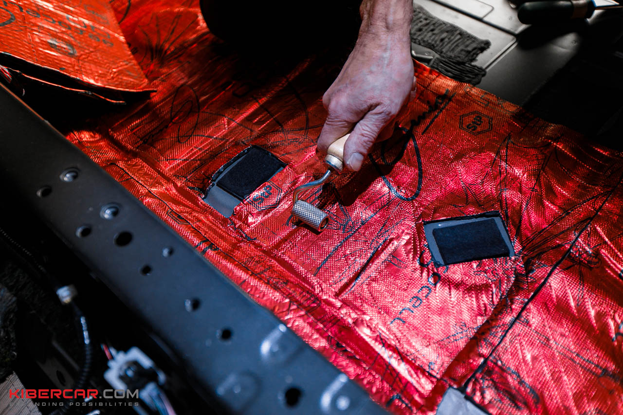 Aerocell QP Genio (4 мм) — инновационный материал, сочетающий в себе эффективный полимерный слой и запатентованные гранулы Aerocell. Наносим его на пол под задними сиденьями, пол в багажнике и внутренние арки.