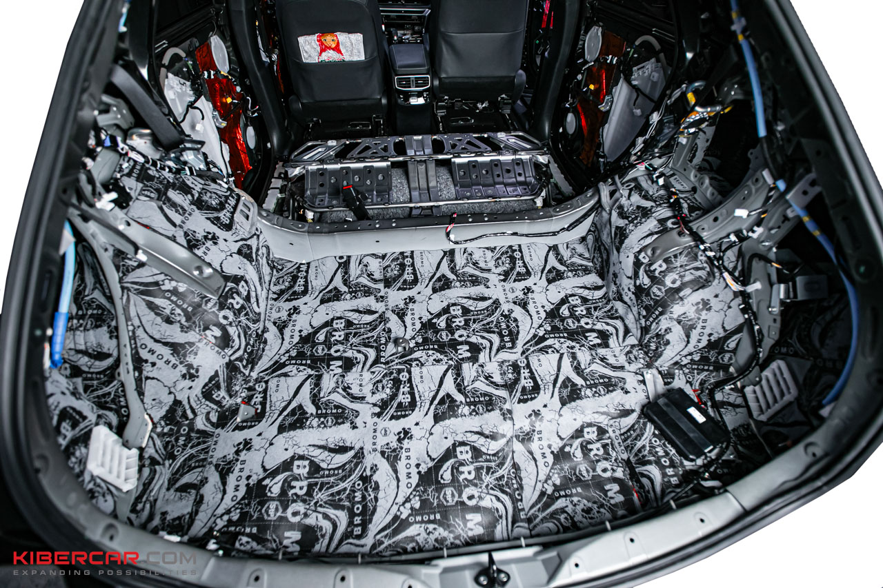StP Bromo (7 мм) – комбинированный материал-сэндвич, объединяющий в себе функции звукопоглощения и звукоизоляции. Открытоячеистая структура мягкого слоя эффективно рассеивает звук и уменьшает его амплитуду. Тяжелая звукозащитная мембрана отражает проникающие звуковые волны и не пропускает их во внутреннее пространство автомобиля. Наносим его на пол в багажнике и внутренние арки.