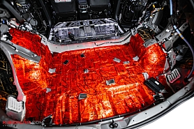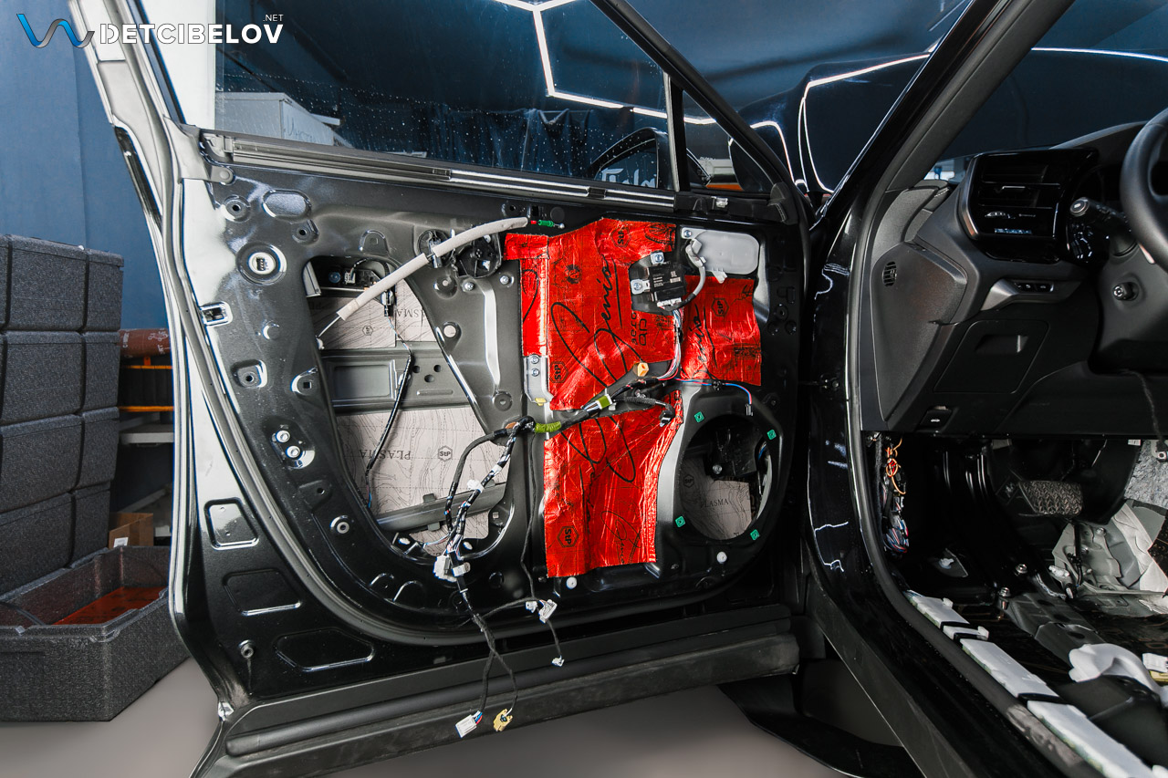 StP Plasma (4 мм) – высокоэффективный многослойный звукоизоляционный материал на основе мастичной мембраны и вспененного полипропилена. Наносим его на на пол в салоне и пол под задними сиденьями.