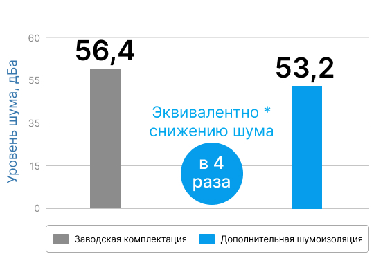В результате автомобиль получил совершенно иной уровень шумоизоляции, соответствующий его статусу.