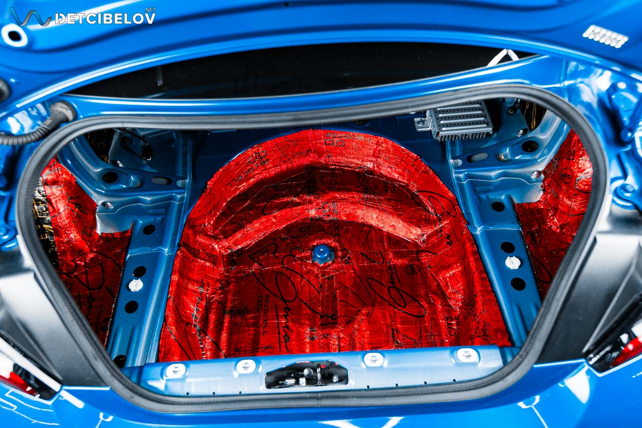 На крышку багажника мы демпферно нанесли Aerocell QP Genio (4 мм), а на пластиковую панель наклеили StP Biplast Premium (15 мм) с увеличенным коэффициентом шумопоглощения.