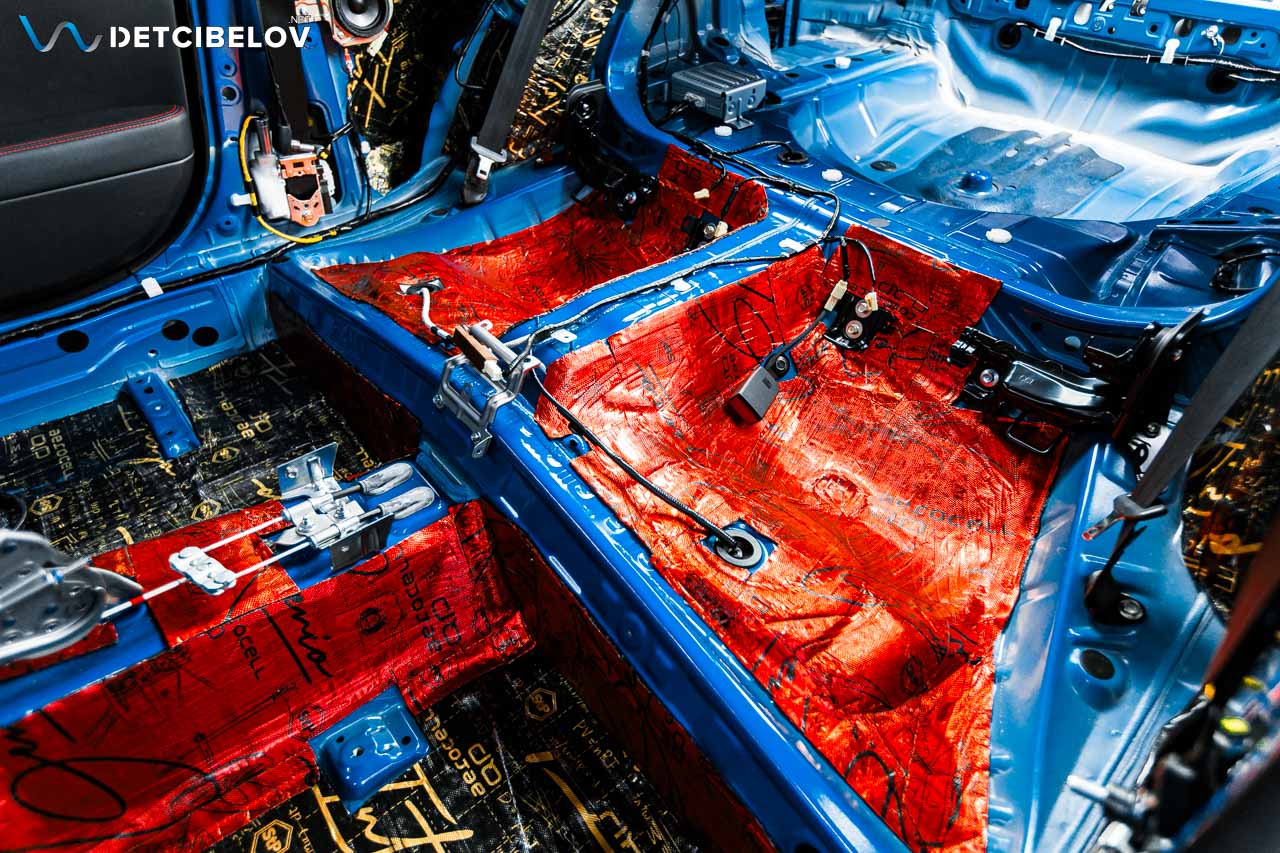 Aerocell QP Genio (4 мм) — инновационный материал, сочетающий в себе эффективный полимерный слой и запатентованные гранулы Aerocell. Наносим его на пол под задними сиденьями и пол в багажнике.