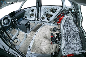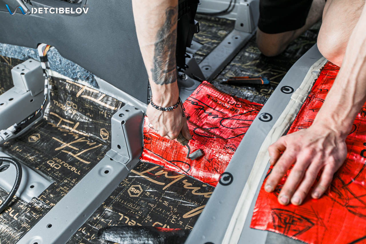 • Шумо-виброизоляция с максимальным уровнем подавления звука, абсолютный максимум. Мы полностью разбираем автомобиль до металла, не оставляя ни единого пластикового элемента или доп.оборудования. Весь металл обезжиривается и плотно укатывается топовыми материалами последнего поколения Aerocell от бренда STP. Обязательно заполняются все пустоты, наносится звукопоглощающая мастика методом распыления и лента антискрип на все зоны риска.