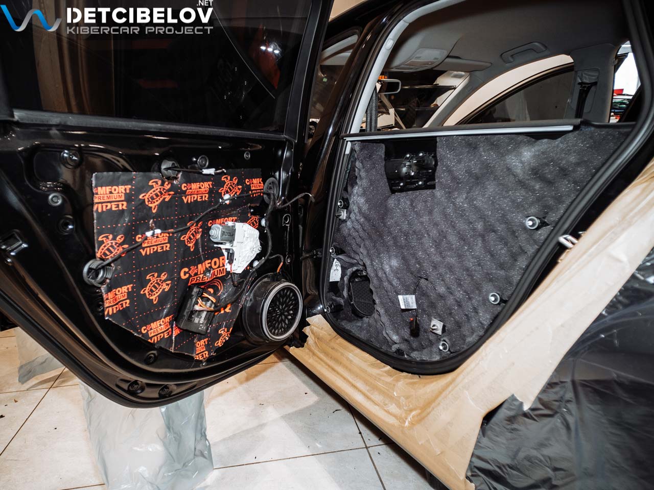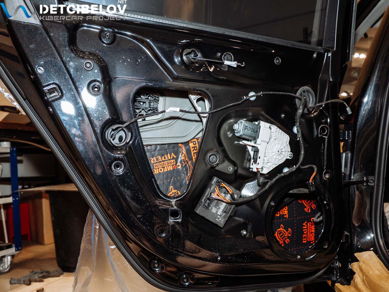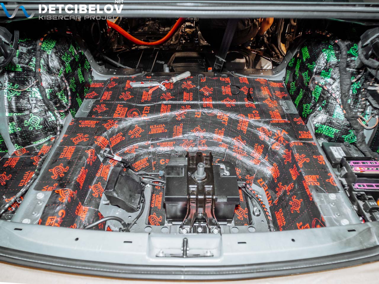 • Никаких компромиссов! Только топовые материалы последнего поколения от ТМ "Comfort mat" с максимальной эффективностью и максимальным количеством слоев. Также использование вибродемпфирующих материалов высокой жесткости с разогревом в печи и дополнительной напыляемой шумоизоляцией для колесных арок.