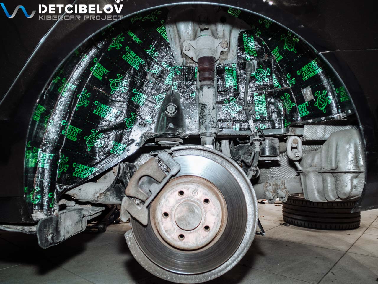 Шумоизоляция торпедо и колесных арок снаружи – за доплату.