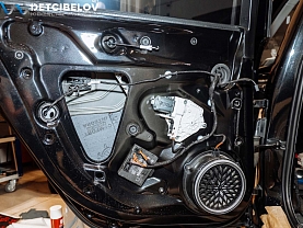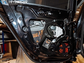 • Самая легкая шумоизоляция автомобиля от ведущих брендов. Она обеспечивает оптимальный результат при однослойной обработке кузова автомобиля. Материал обладает одновременно как шумо-, так и виброизоляционными свойствами, что позволяет укладывать материал в один слой, вместо двух, используемых при многослойной классической шумоизоляции автомобиля. Также мы дополнительно обрабатываем двери акустическим материалом для снижения скрипов и увеличения акустического комфорта.