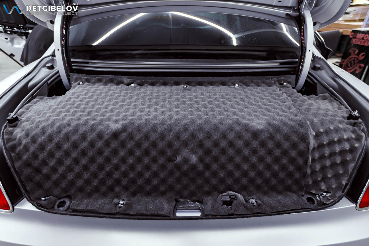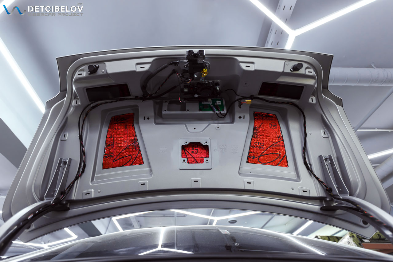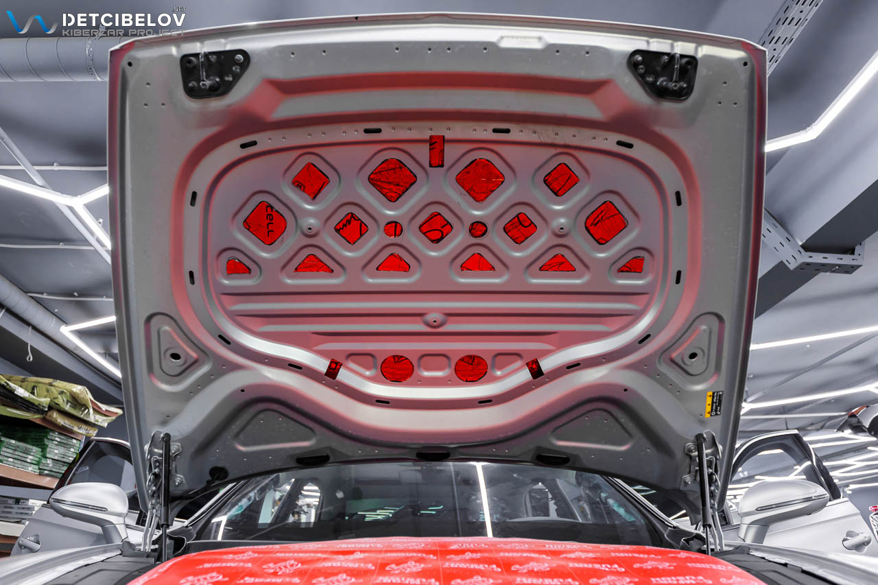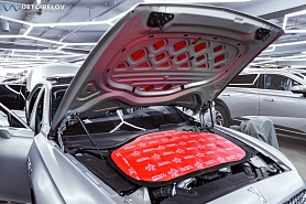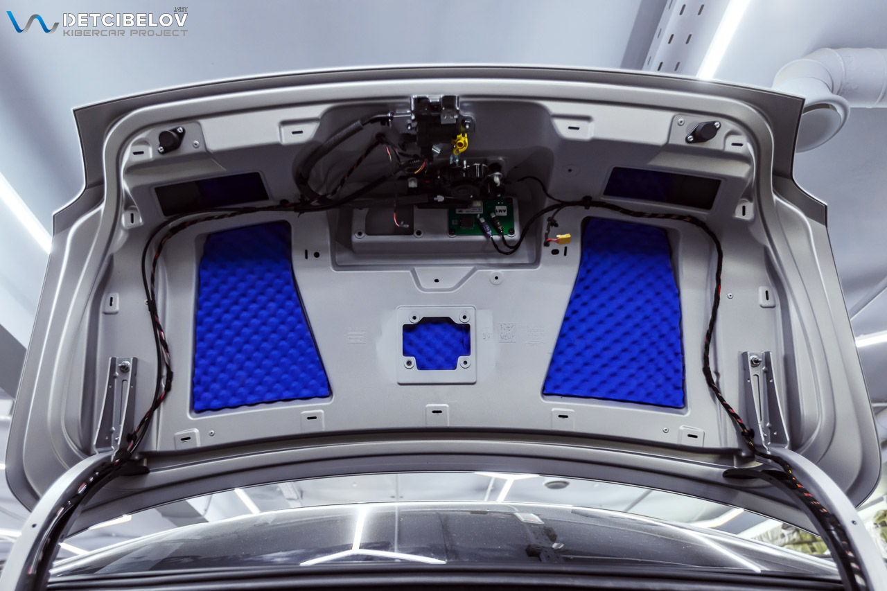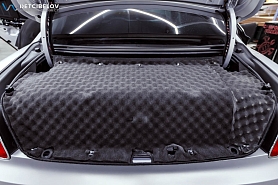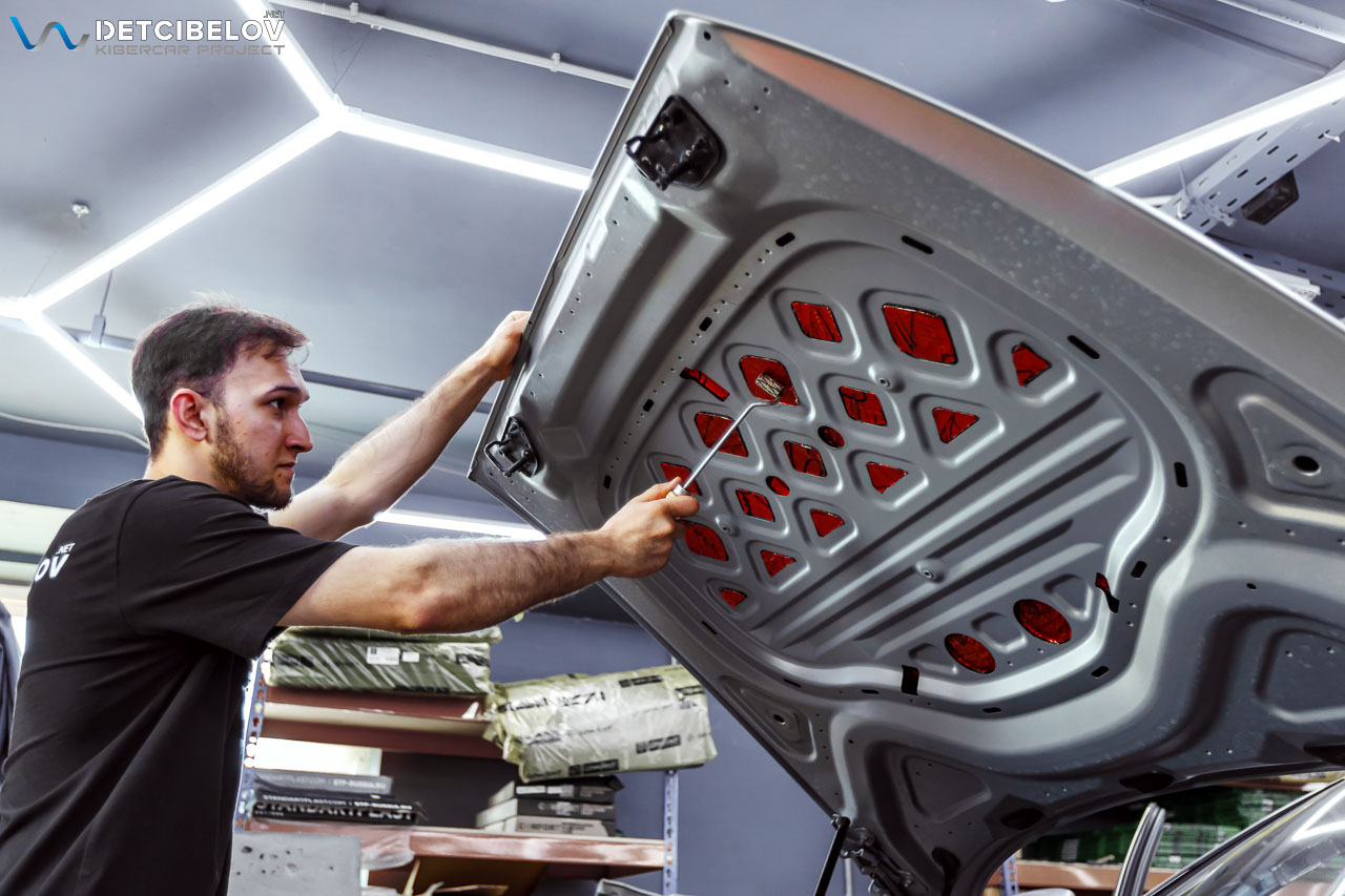 После шумоизоляции пола и зоны багажника переходим к работе над капотом и крышкой багажника.