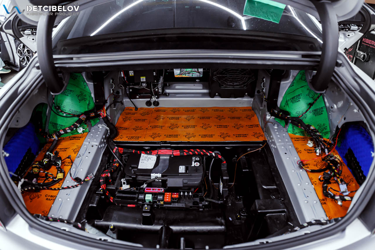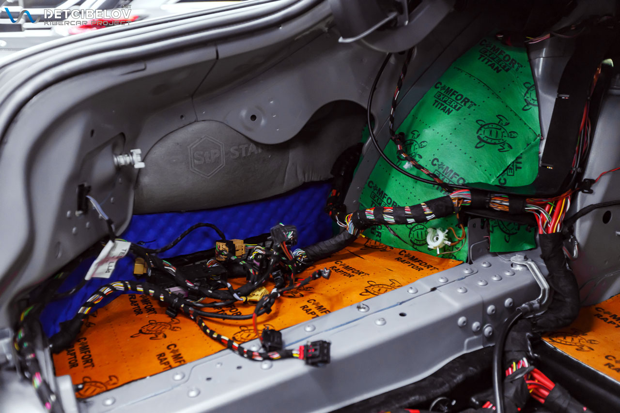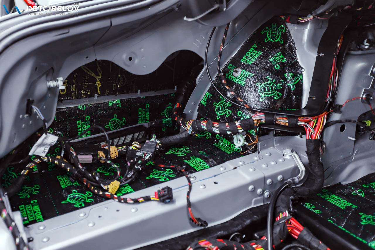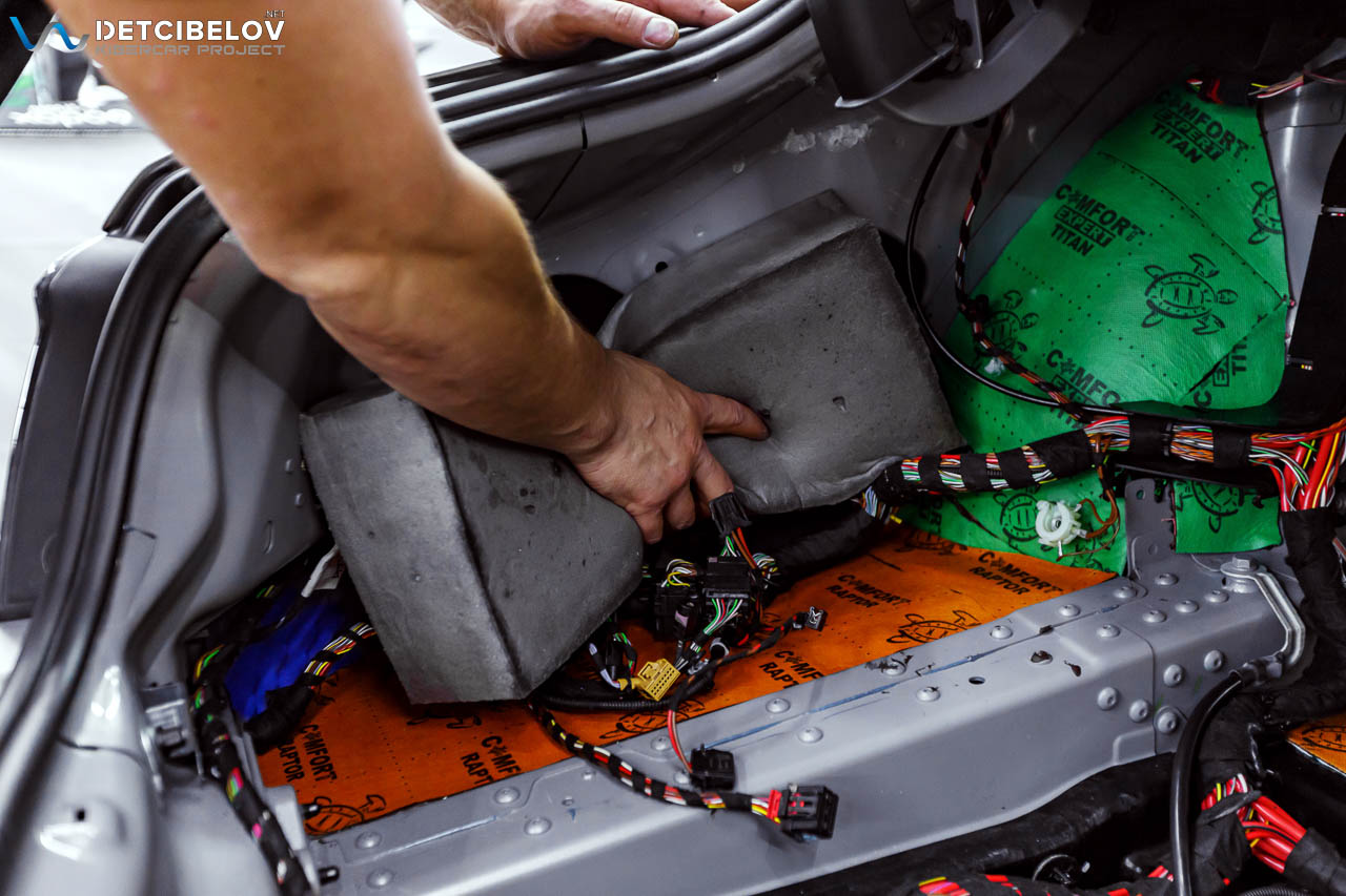 • Никаких компромиссов! Только топовые материалы последнего поколения от ТМ "Comfort mat" с максимальной эффективностью и максимальным количеством слоев. Также использование вибродемпфирующих материалов высокой жесткости с разогревом в печи и дополнительной напыляемой шумоизоляцией для колесных арок.