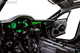 • Максимальный уровень защиты салона автомобиля от шума с применением материалов последнего поколения Aerocell, уровень Level 3 от бренда STP. В качестве основного материала используется инновационный материал на основе гранул из полипропилена Aerocell и мастики в рамках одного слоя, также сэндвич Bromo с мембраной NoiseBlock2.