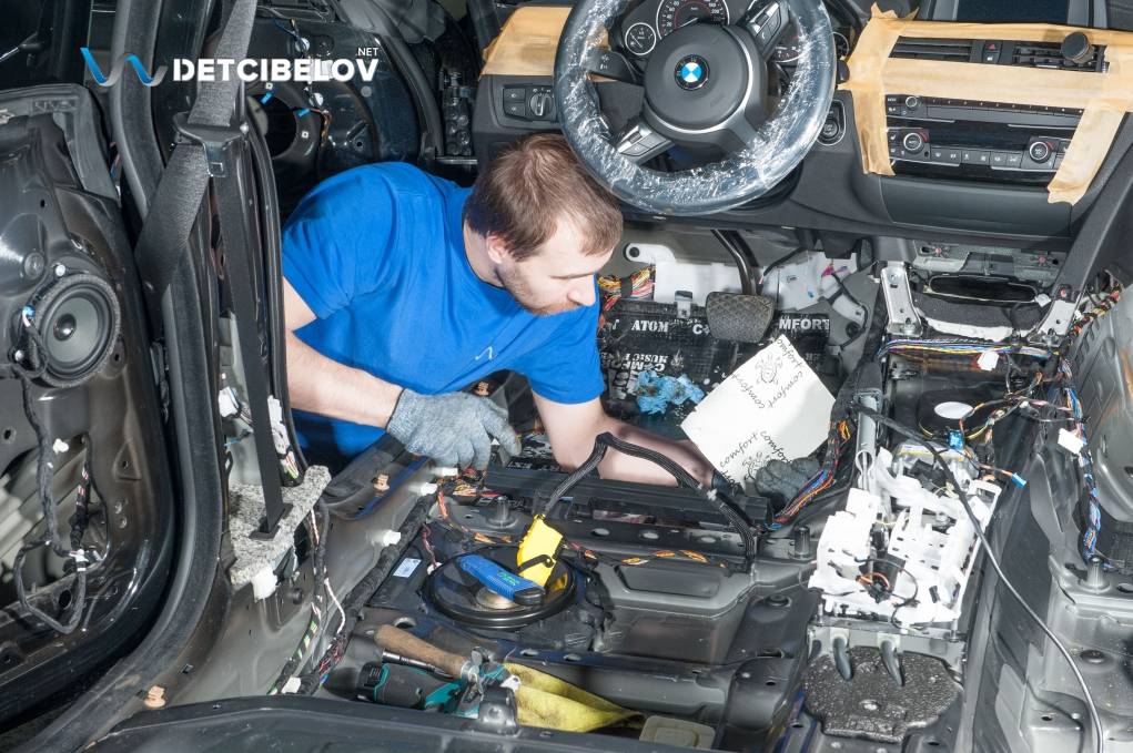 С вашим автомобилем будут работать узкоспециализированные мастера, которые обладают многолетним опытом (не менее 5 лет) в установке шумки на автомобили премиальных марок. Шумоизоляция БМВ Ф30 – основное направление в нашем установочном центре. Кроме того, мы сотрудничаем с лаборантами-акустиками завода Comfort Mat. Благодаря такому тандему, удается разработать технологическую карту работ, чтобы добиться ощутимого акустического комфорта.