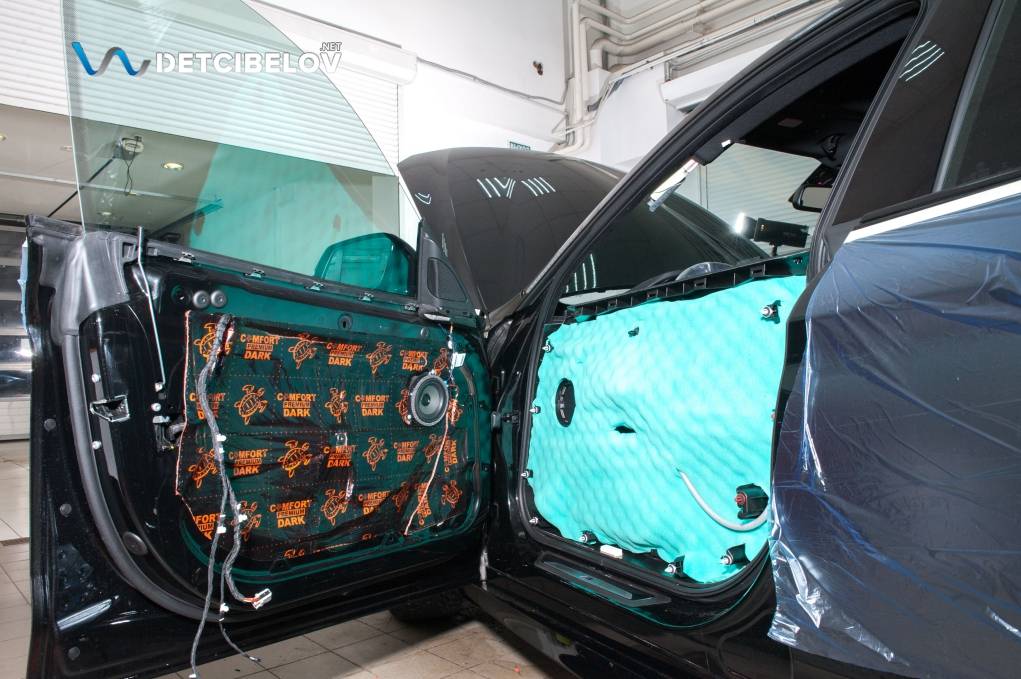 • Никаких компромиссов! Только топовые материалы последнего поколения от ТМ "Comfort mat" с максимальной эффективностью и максимальным количеством слоев. Также использование вибродемпфирующих материалов высокой жесткости с разогревом в печи и дополнительной напыляемой шумоизоляцией для колесных арок.