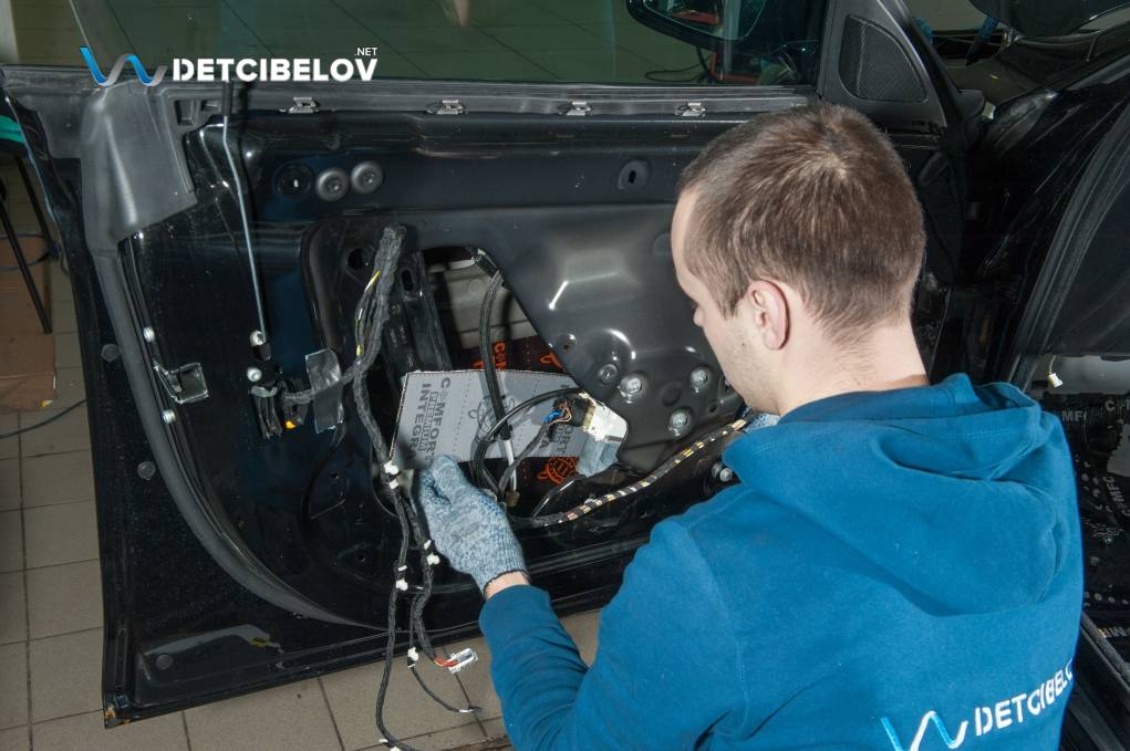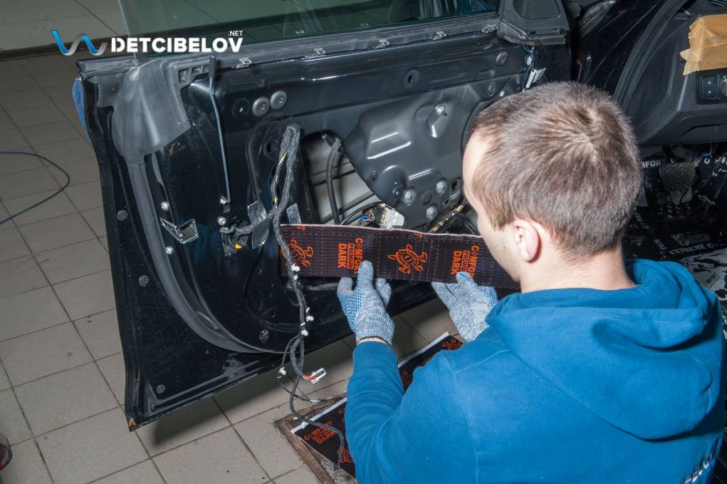 Работаем методично и грамотно — мы не стремимся опередить всех и не приветствуем спешку.  Сначала проводится полный демонтаж дверной обшивки, подготовительные работы, после чего происходит установка виброизоляционных материалов. Автомобиль получает четыре слоя изоляции, которые забирают на себя вибрацию, снижают уровень шума и дополнительно сохраняют тепло в салоне. Спустя 1-2 дня вы выедете из нашего установочного центра на обновленном авто и не заметите и следа вмешательства – внешне салон останется таким же, как и был до тюнинга, только внутри станет значительно тише.