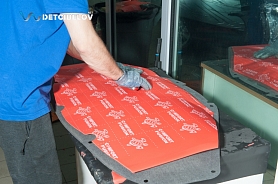Для изоляции внутренней части капота мы используем Comfort mat Dark D3 Premium (3 мм). Дополнительно к стандартным покрытиям мы добавляем Comfort mat Fusion Red.