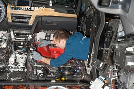 Затем интерьер автомобиля собирается заново, очищается и вытирается. Этот процесс необходим для полного завершения всей работы и оценки качества оказанной услуги. Мастер-инспектор проверяет функциональность всех электронных устройств и оценивает качество сборки, убеждаясь в отсутствии зазоров, царапин, поломок и других дефектов, выводит протокол о проделанной всей работы.