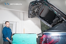 После шумоизоляции пола и зоны багажника переходим к работе над капотом и крышкой багажника.