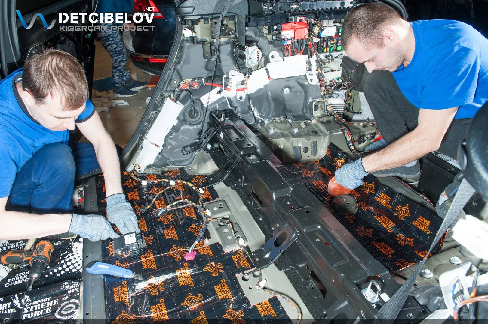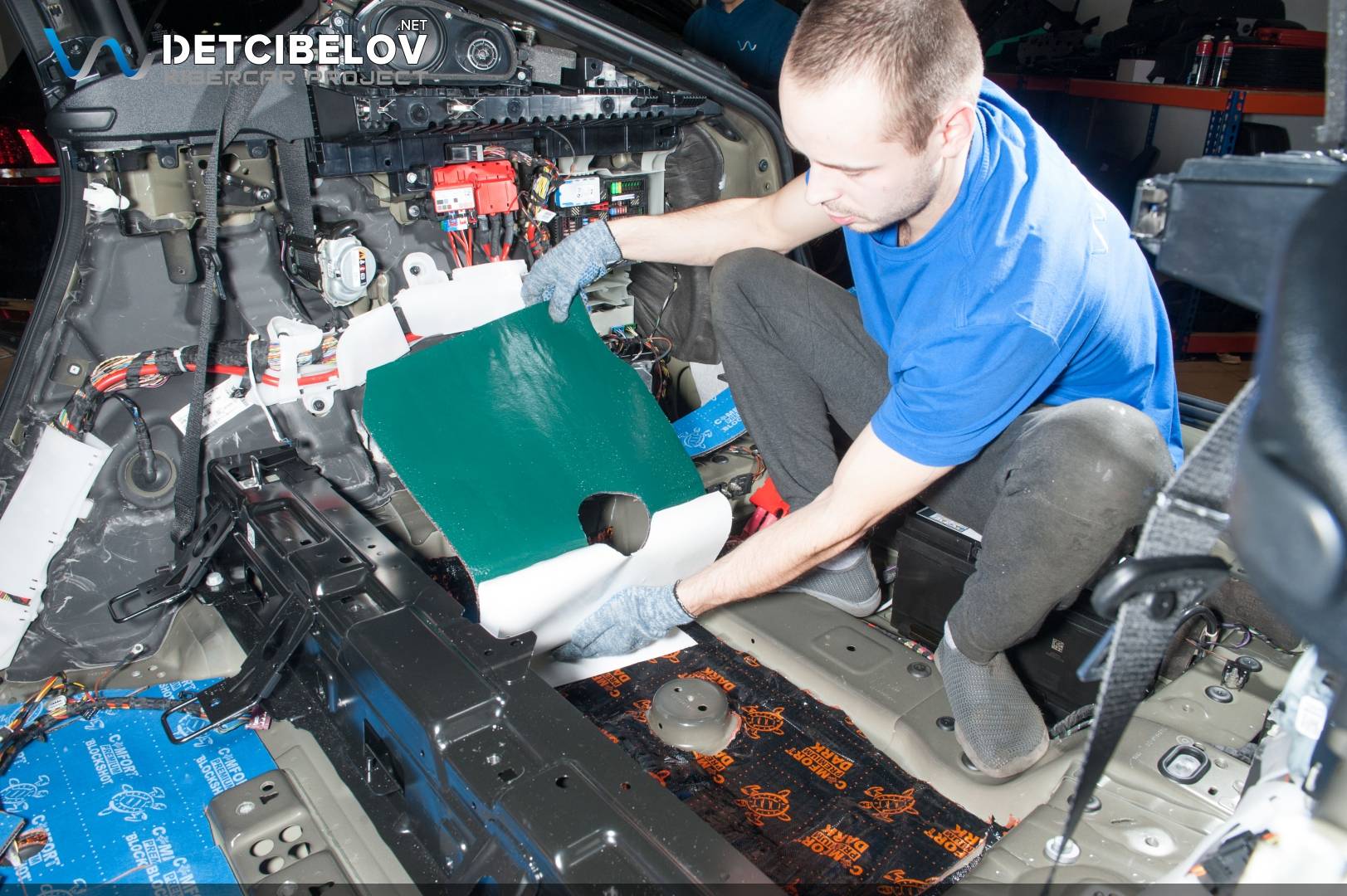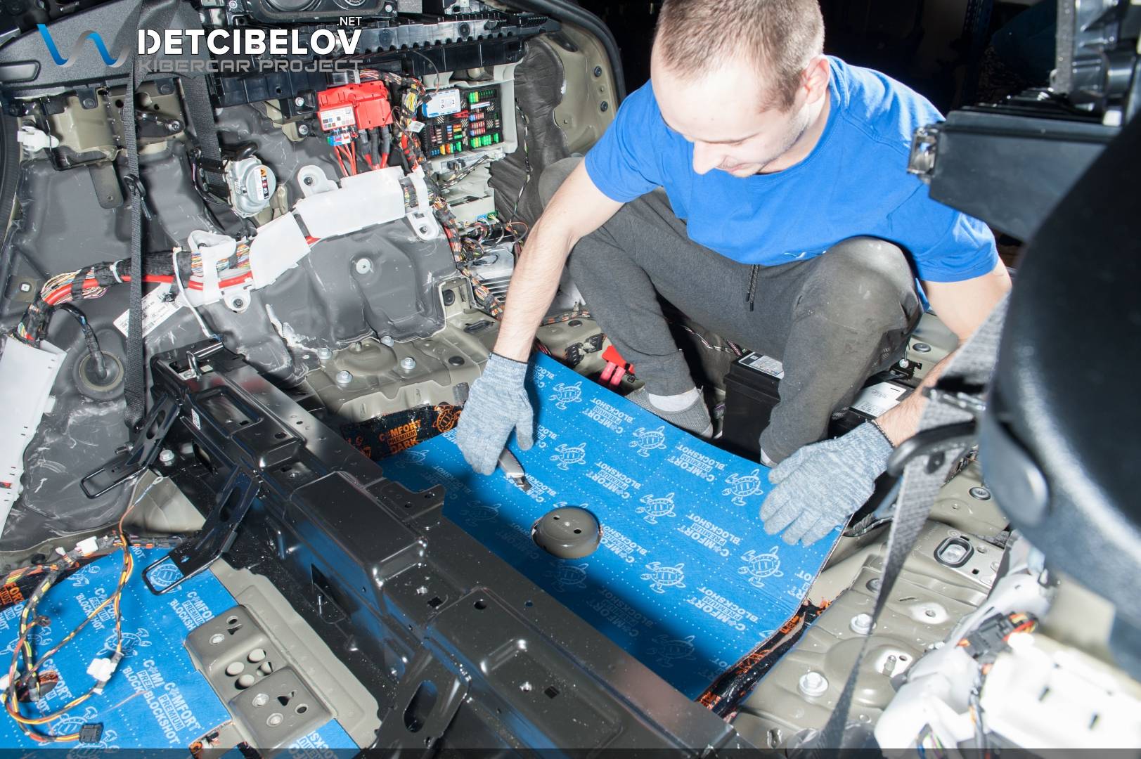 Во время проведения полной шумоизоляции «под ключ» последовательно обрабатываются все участки, через которые шум проникает в салон или распространяется по нему: