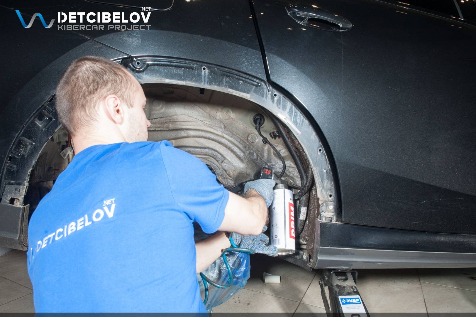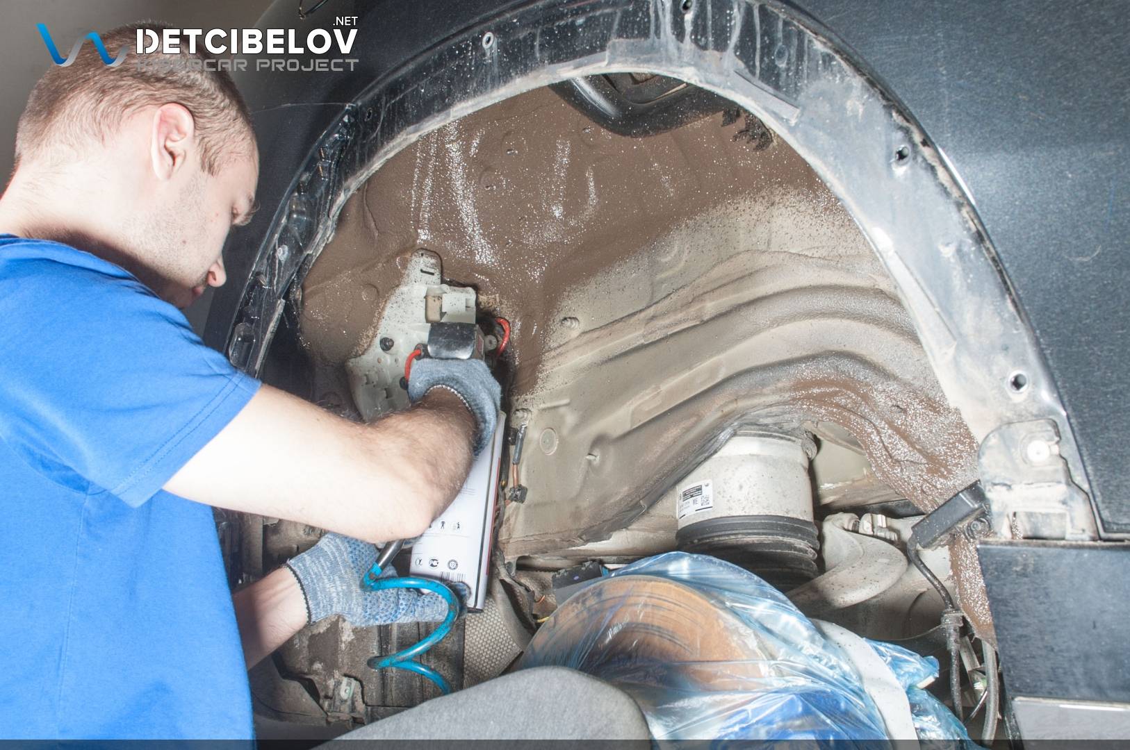 Шумоизоляция торпедо и колесных арок снаружи – за доплату.