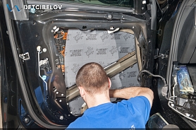• Самая легкая шумоизоляция автомобиля от ведущих брендов. Она обеспечивает оптимальный результат при однослойной обработке кузова автомобиля. Материал обладает одновременно как шумо-, так и виброизоляционными свойствами, что позволяет укладывать материал в один слой, вместо двух, используемых при многослойной классической шумоизоляции автомобиля. Также мы дополнительно обрабатываем двери акустическим материалом для снижения скрипов и увеличения акустического комфорта.