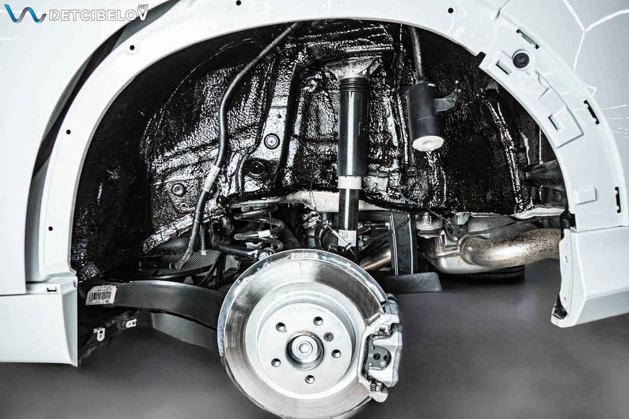 Шумоизоляция торпедо и колесных арок снаружи – за доплату.