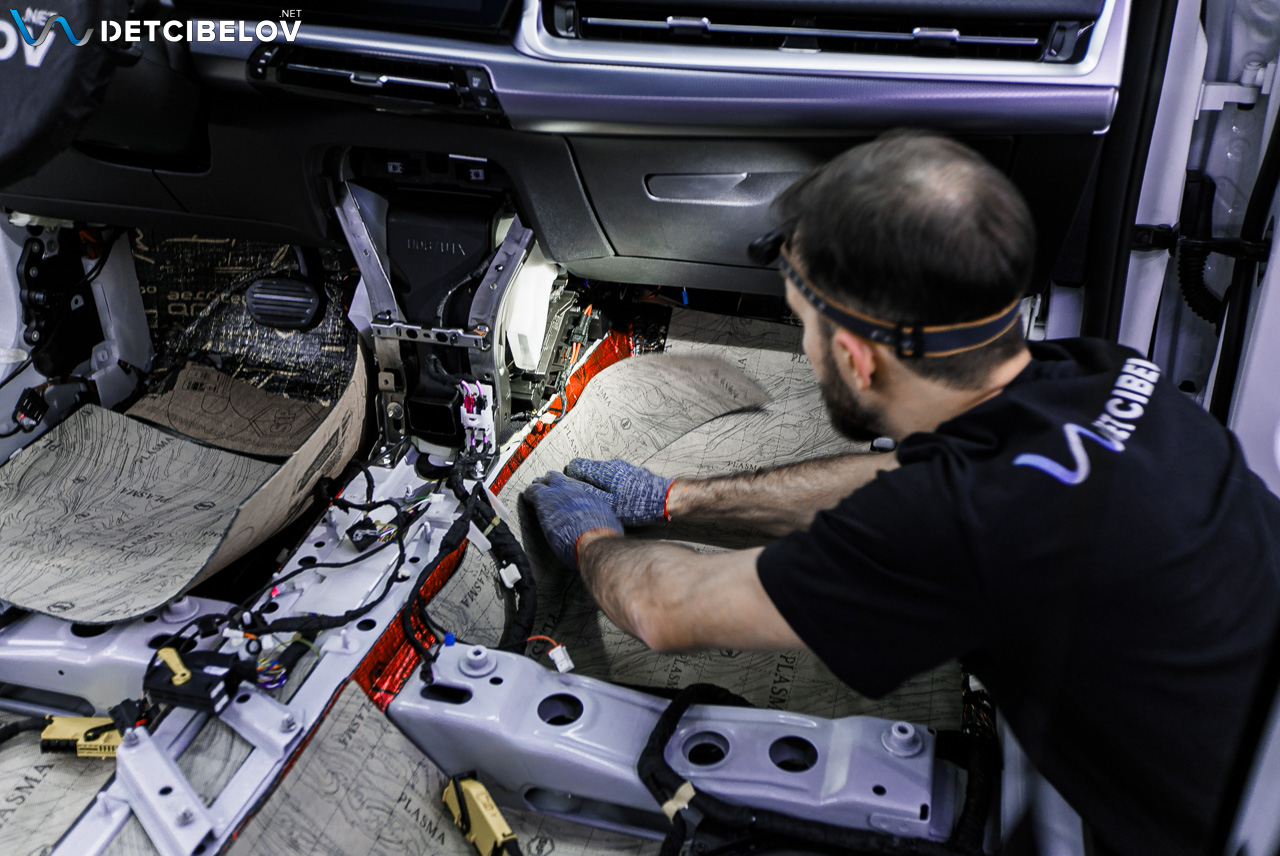 • Никаких компромиссов! Только топовые материалы последнего поколения от ТМ "Comfort mat" с максимальной эффективностью и максимальным количеством слоев. Также использование вибродемпфирующих материалов высокой жесткости с разогревом в печи и дополнительной напыляемой шумоизоляцией для колесных арок.