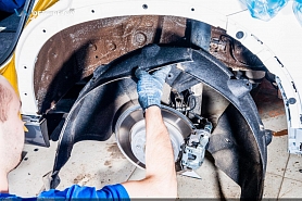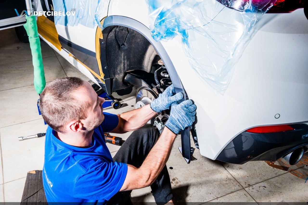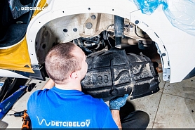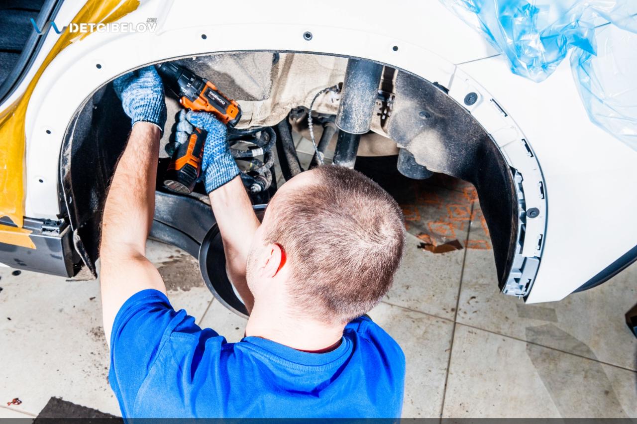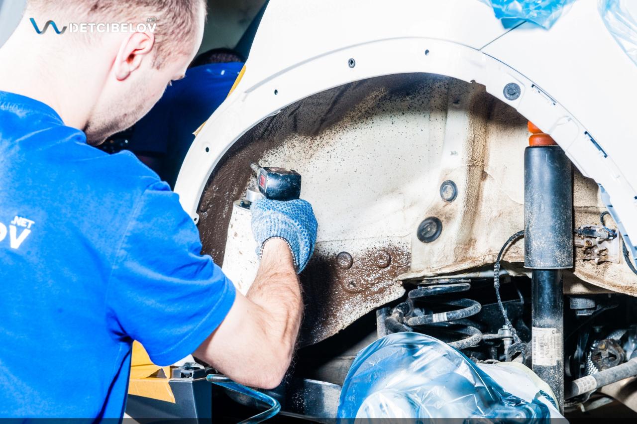 Последний этап отводится колесным аркам для того, чтоб исключить все шумы и скрипы резины. Перед работой снимается 4 подкрылка и обезжиривается поверхность.