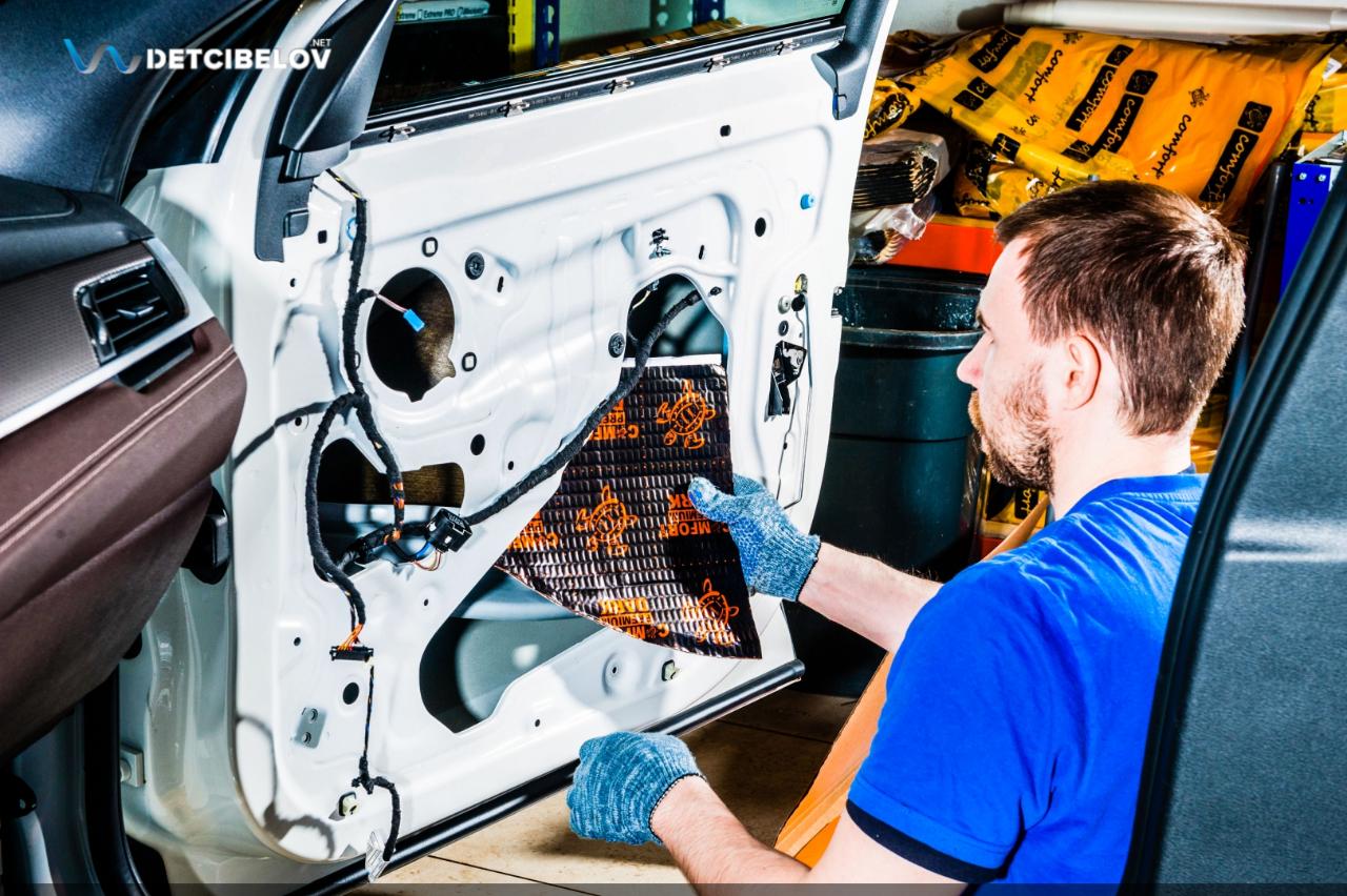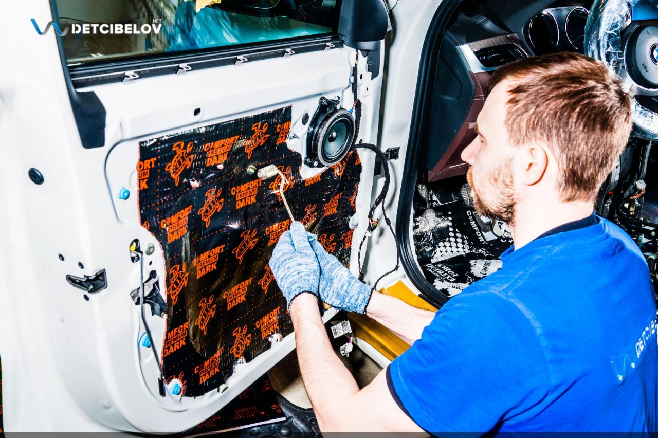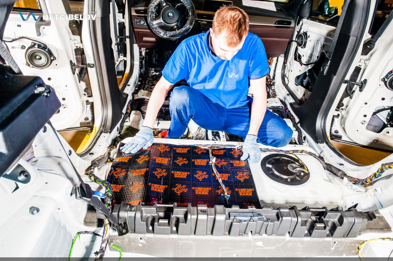 • Никаких компромиссов! Только топовые материалы последнего поколения от ТМ "Comfort mat" с максимальной эффективностью и максимальным количеством слоев. Также использование вибродемпфирующих материалов высокой жесткости с разогревом в печи и дополнительной напыляемой шумоизоляцией для колесных арок.