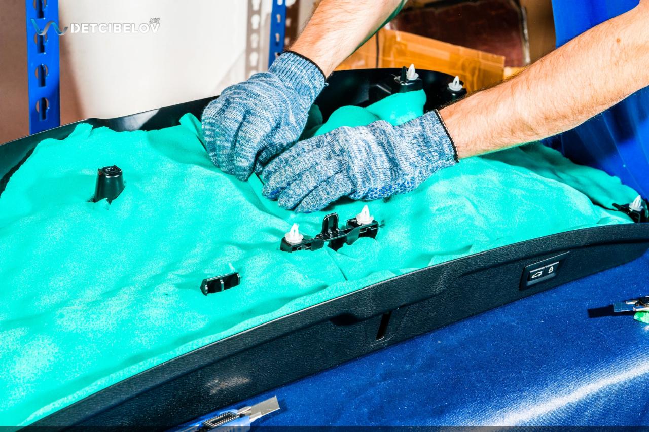 Для крышки багажника также используется только один слой на пластиковую панель, но другого материала - Wave Expert. Он обладает высоким коэффициентом шумопоглощения, поэтому несмотря на малое количество слоев, его свойства и толщина справятся с любым видом шума.