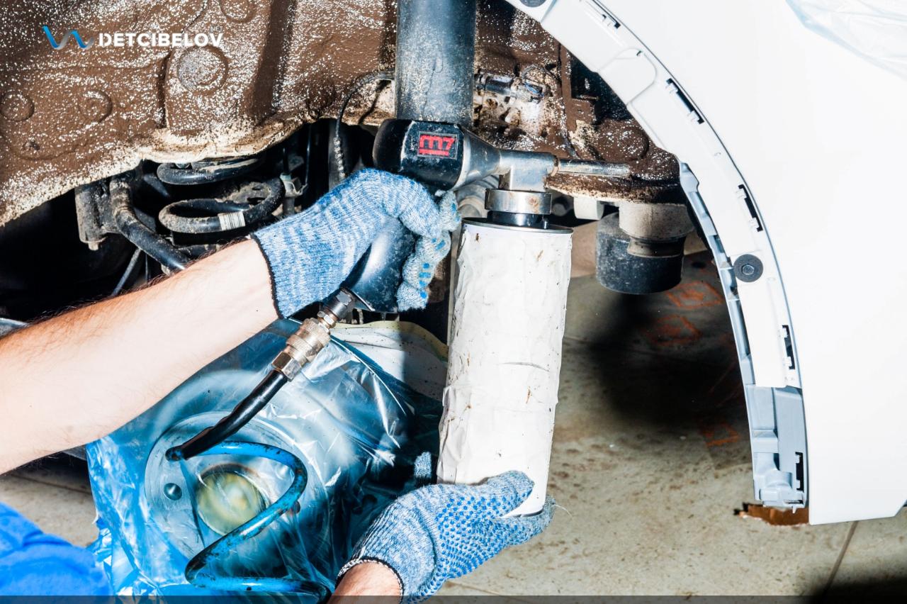 Перед началом процесса мы снимаем все обшивки для доступа к днищу, производим демонтаж не только пола, но и сидений, ковров.