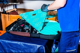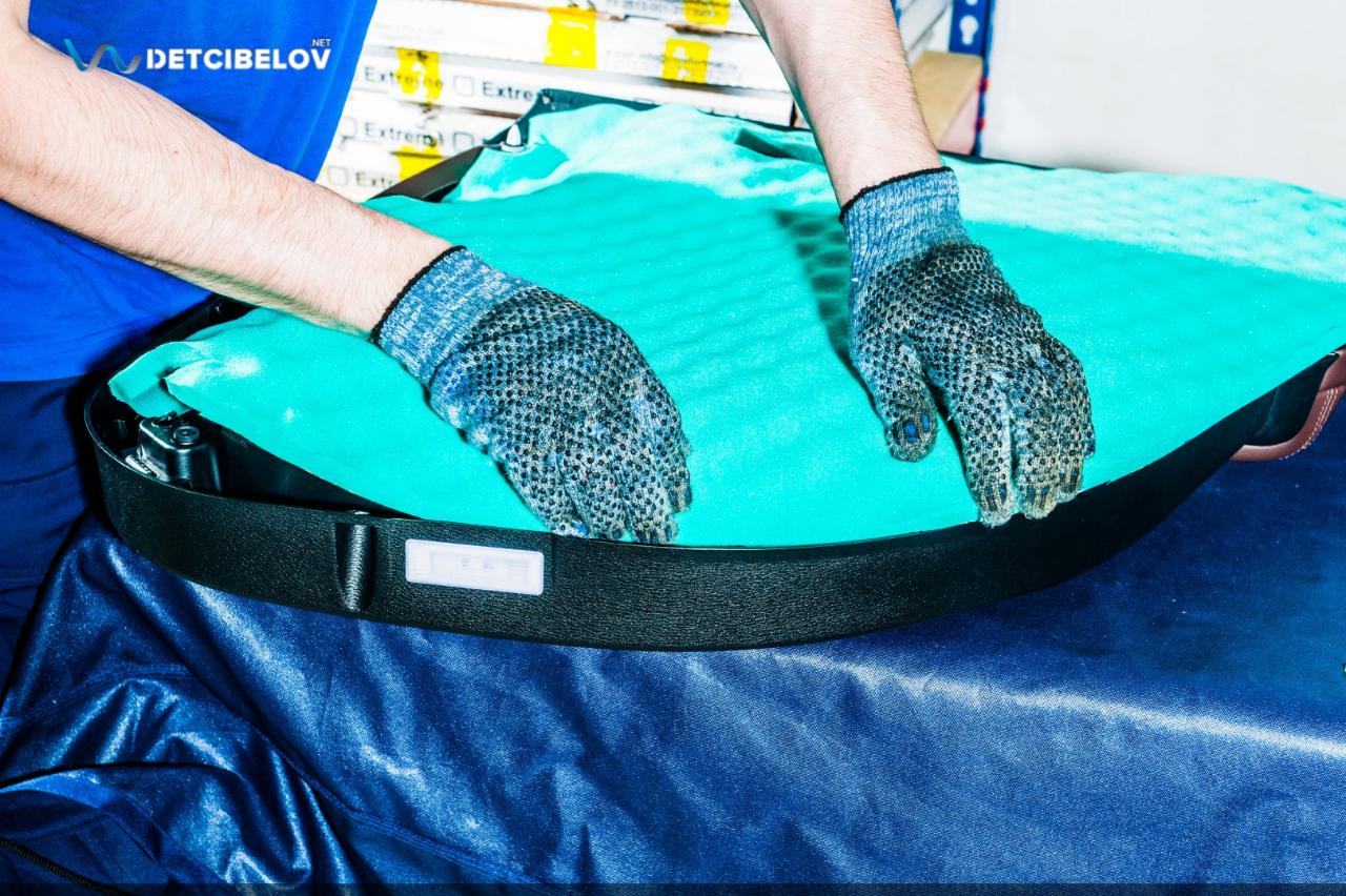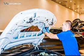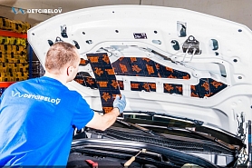 А мы идем дальше и переходим к работе над капотом и крышкой багажника. Подготавливаем листы материала, которые являются высококлассными среди других в сегменте для этих областей. Благодаря этому вы получаете максимальное качество шумоизоляции.