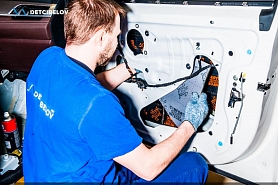 • Работы производятся строго по технологии завода производителя материалов мастерами, которые имеют узкую специализацию и занимаются исключительно шумоизоляцией авто, с опытом от 3 до 10 лет.