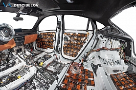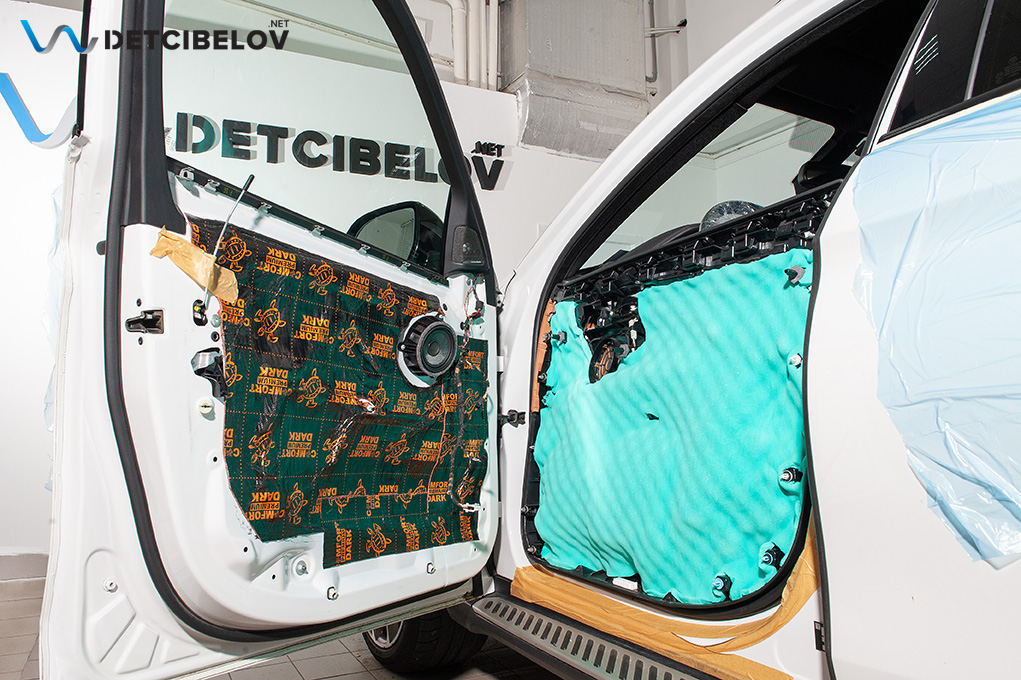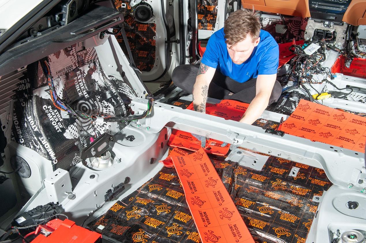 • Никаких компромиссов! Только топовые материалы последнего поколения от ТМ "Comfort mat" с максимальной эффективностью и максимальным количеством слоев. Также использование вибродемпфирующих материалов высокой жесткости с разогревом в печи и дополнительной напыляемой шумоизоляцией для колесных арок.