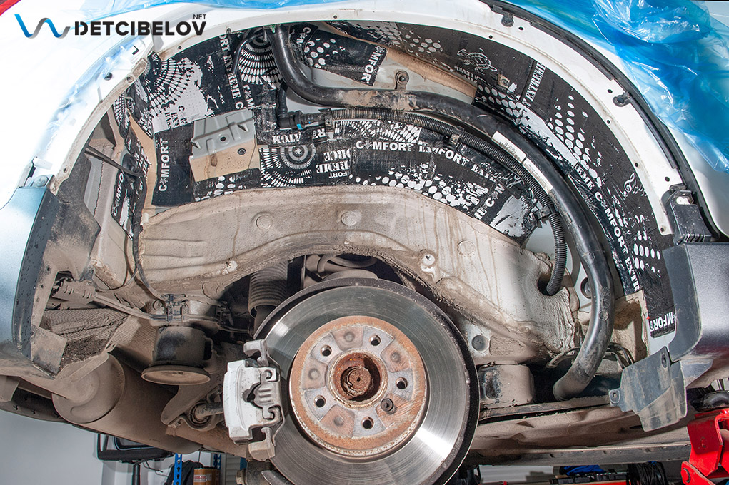 Шумоизоляция торпедо и колесных арок снаружи – за доплату.