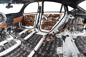 • Отличие от нашего максимального пакета состоит в том, что мы полностью разбираем автомобиль до металла, не оставляя ни единого пластикового элемента или доп.оборудования, снимаем торпедо, сливаем фреон из кондиционера и антифриз с печки и добавляем несколько инновационных материалов. Данную работу проводят мастера с опытом от 5 лет с премиальными авто. Весь металл обезжиривается и плотно укатывается топовыми материалами последнего поколения Aerocell, от бренда STP. Абсолютный уровень защиты салона автомобиля от шума с применением материалов последнего поколения, Level 3+ от бренда STP. Десять типов материалов: Aerocell QP, Genio, Aerocell QP Intrigo, Стыковочные ленты Aerocell, Звукоизоляция NoiseBlock 2, Сэндвич-материал Bromo, Скотч Bromo, Звукопоглотитель Biplast Premium 15A (armor), Acoustic Block в пустоты и звукопоглощающая мастика, которая наносится методом распыления и лента антискрип на все зоны риска. Работы проводятся в течении 6 дней.