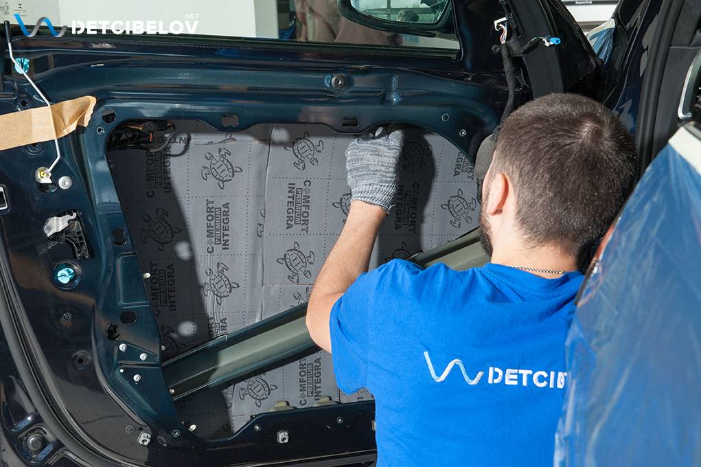 • Никаких компромиссов! Только топовые материалы последнего поколения от ТМ "Comfort mat" с максимальной эффективностью и максимальным количеством слоев. Также использование вибродемпфирующих материалов высокой жесткости с разогревом в печи и дополнительной напыляемой шумоизоляцией для колесных арок.