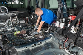 Огромное количество работы приходится на изоляцию от звуков, шумов и вибраций на салон и багажник, которые к ним восприимчивы. Чтобы предупредить прохождение звука со всех сторон: от внешней среды, от мотора, от шума резины и много другое, необходимо проделать полную и качественную работу.