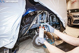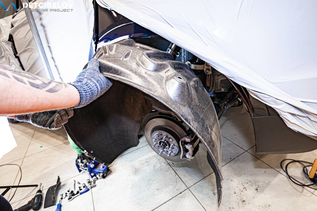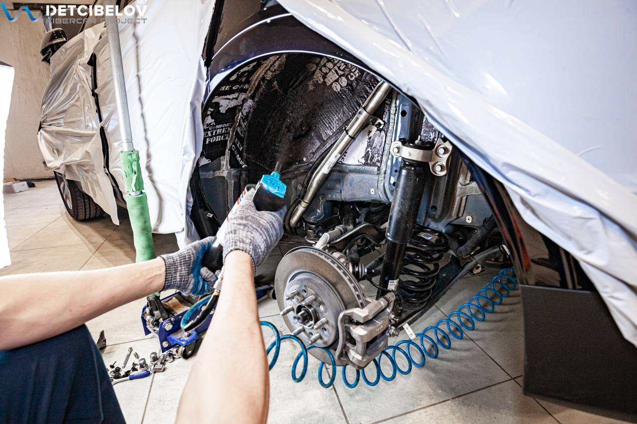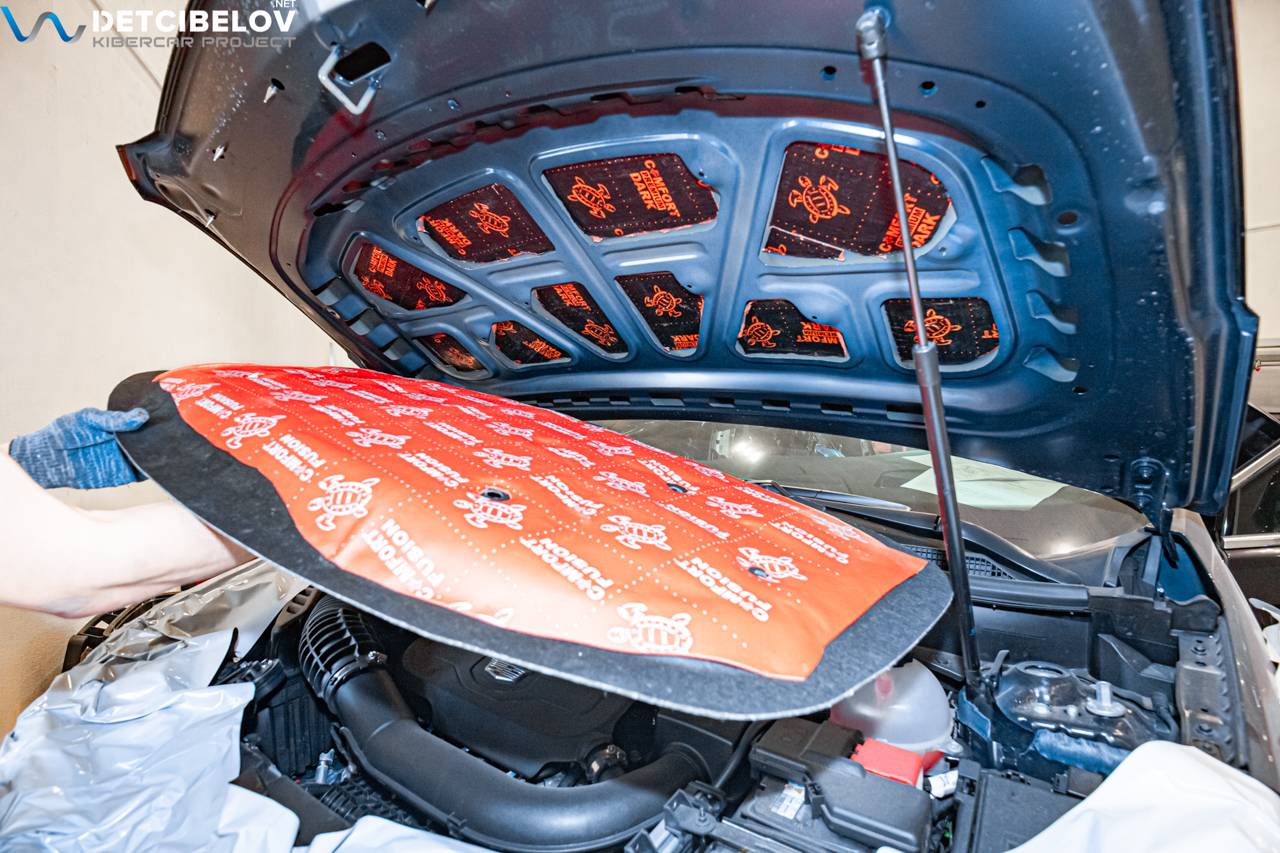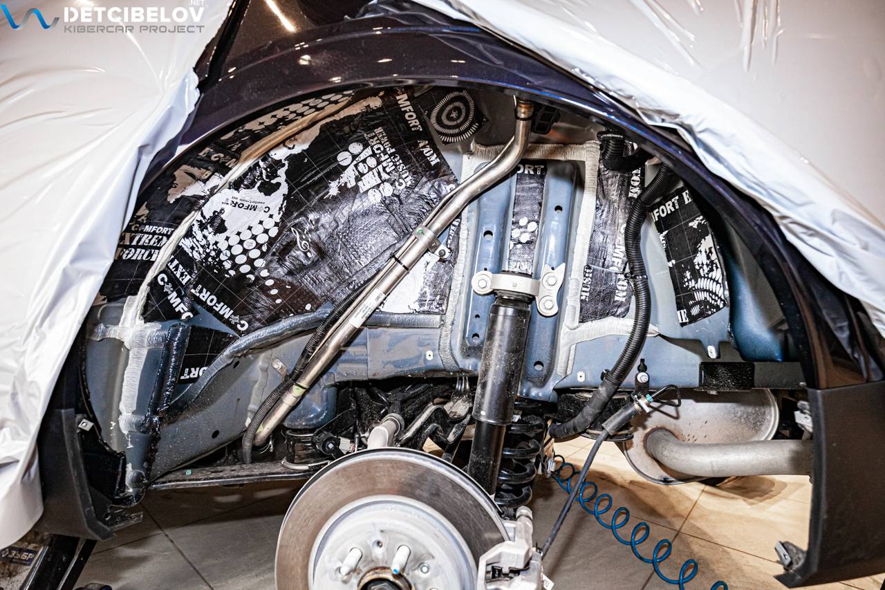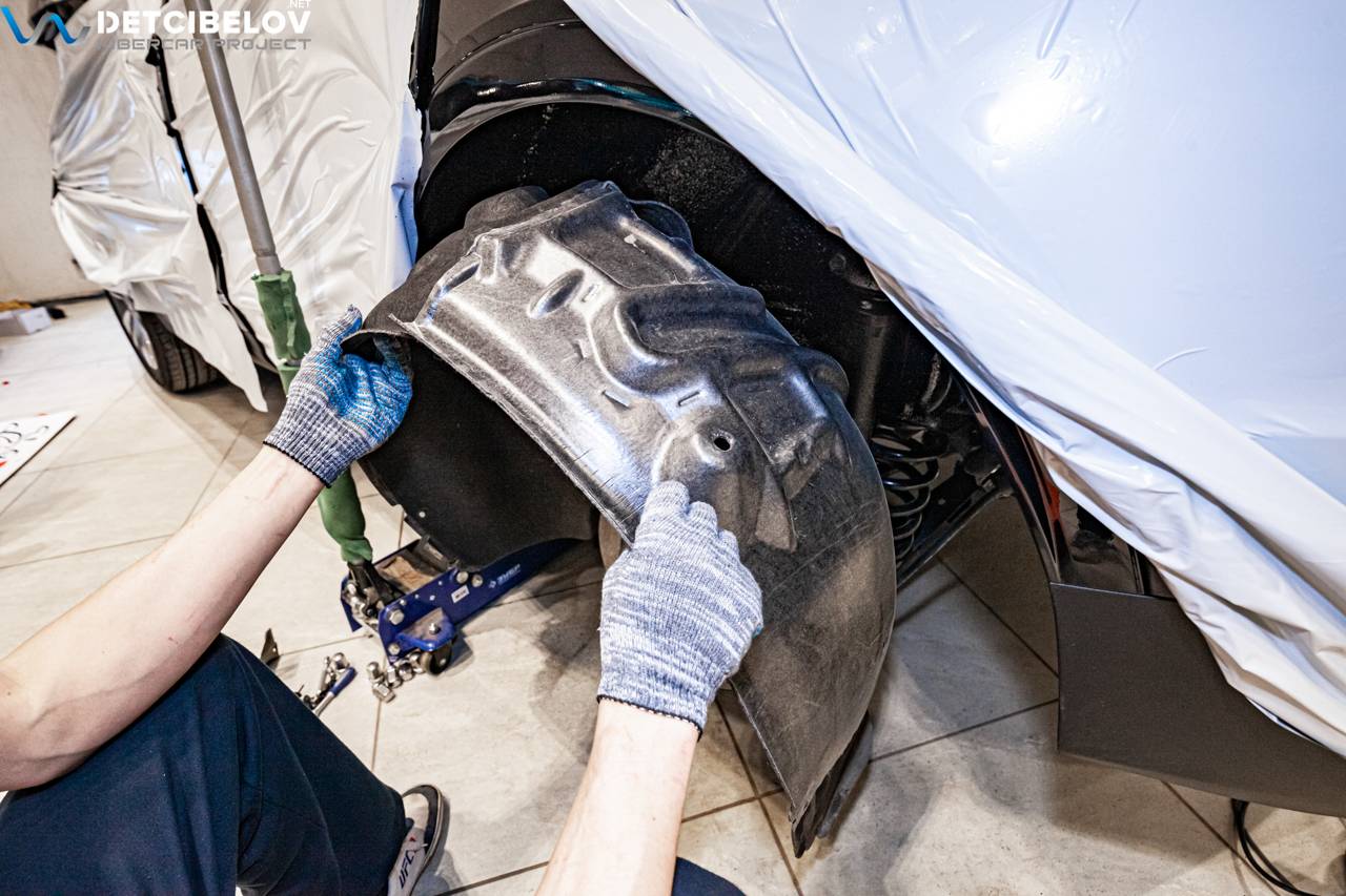 Шумоизоляция торпедо и колесных арок снаружи – за доплату.