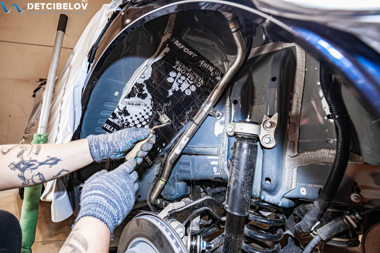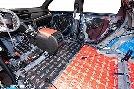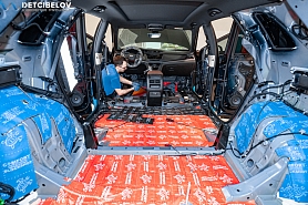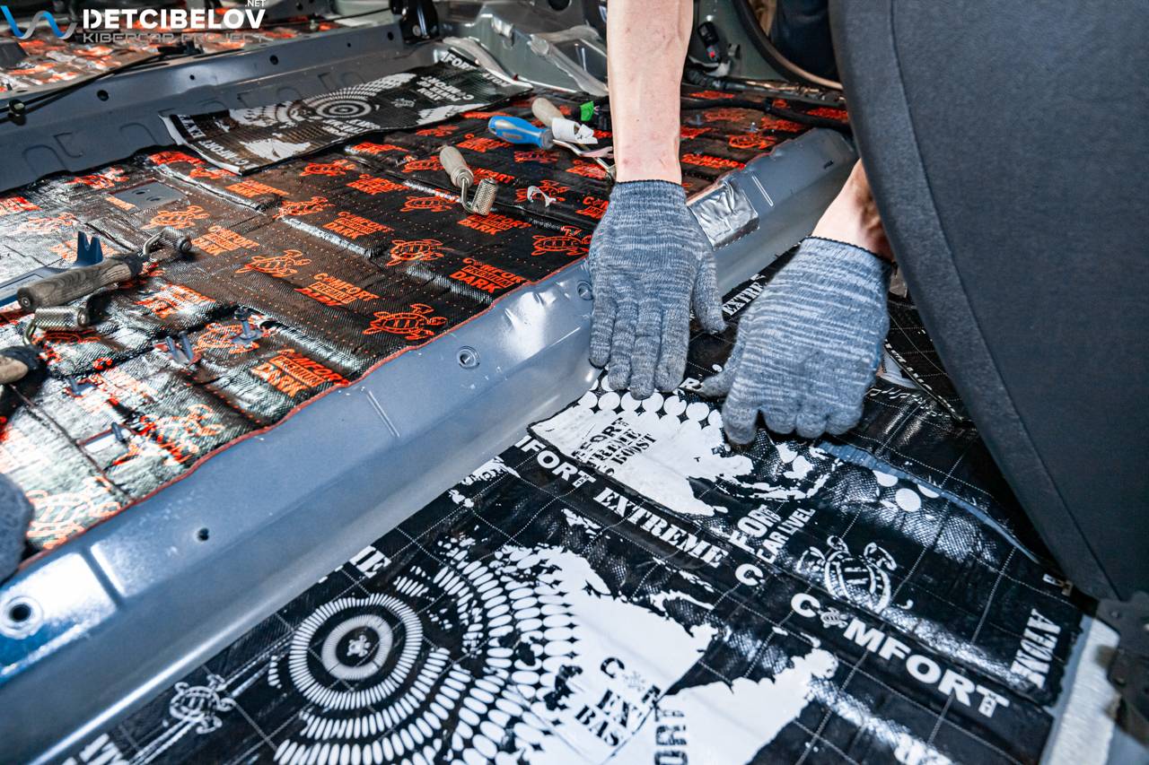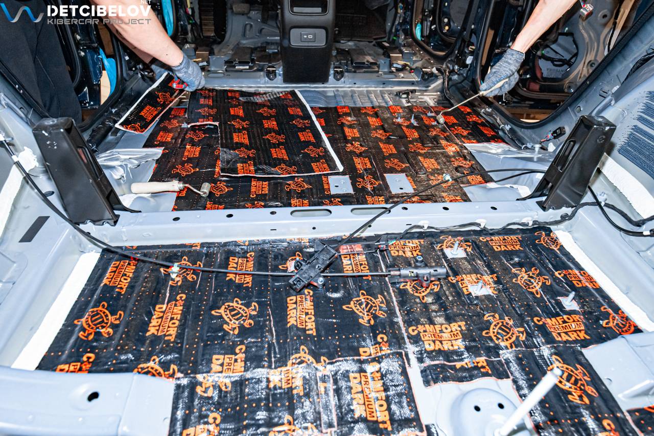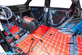 • Никаких компромиссов! Только топовые материалы последнего поколения от ТМ "Comfort mat" с максимальной эффективностью и максимальным количеством слоев. Также использование вибродемпфирующих материалов высокой жесткости с разогревом в печи и дополнительной напыляемой шумоизоляцией для колесных арок.