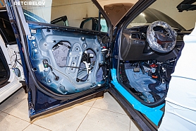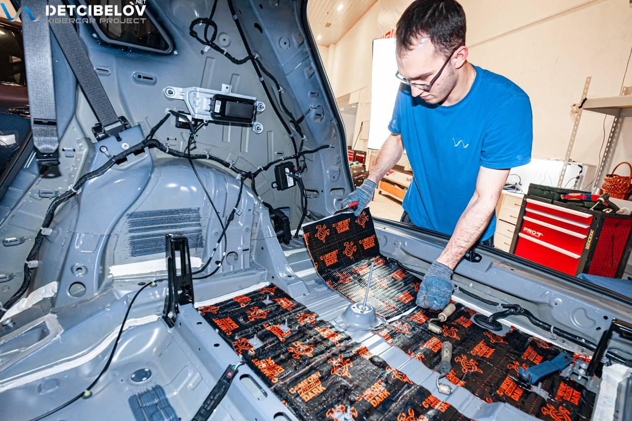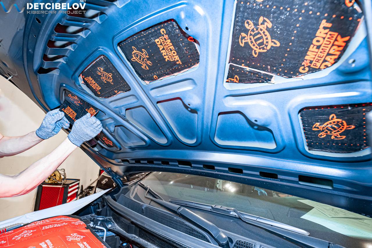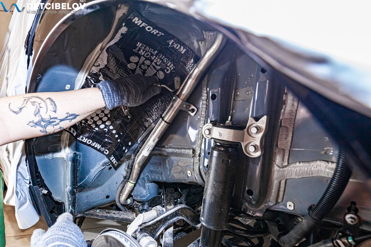 • Никаких компромиссов! Только топовые материалы последнего поколения от ТМ "Comfort mat" с максимальной эффективностью и максимальным количеством слоев. Также использование вибродемпфирующих материалов высокой жесткости с разогревом в печи и дополнительной напыляемой шумоизоляцией для колесных арок.