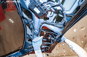 • Отличие от нашего максимального пакета состоит в том, что мы полностью разбираем автомобиль до металла, не оставляя ни единого пластикового элемента или доп.оборудования, снимаем торпедо, сливаем фреон из кондиционера и антифриз с печки и добавляем несколько инновационных материалов. Данную работу проводят мастера с опытом от 5 лет с премиальными авто. Весь металл обезжиривается и плотно укатывается топовыми материалами последнего поколения Aerocell, от бренда STP. Абсолютный уровень защиты салона автомобиля от шума с применением материалов последнего поколения, Level 3+ от бренда STP. Десять типов материалов: Aerocell QP, Genio, Aerocell QP Intrigo, Стыковочные ленты Aerocell, Звукоизоляция NoiseBlock 2, Сэндвич-материал Bromo, Скотч Bromo, Звукопоглотитель Biplast Premium 15A (armor), Acoustic Block в пустоты и звукопоглощающая мастика, которая наносится методом распыления и лента антискрип на все зоны риска. Работы проводятся в течении 6 дней.