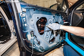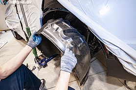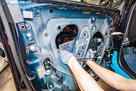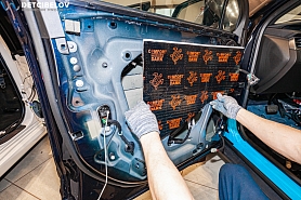 • Самая легкая шумоизоляция автомобиля от ведущих брендов. Она обеспечивает оптимальный результат при однослойной обработке кузова автомобиля. Материал обладает одновременно как шумо-, так и виброизоляционными свойствами, что позволяет укладывать материал в один слой, вместо двух, используемых при многослойной классической шумоизоляции автомобиля. Также мы дополнительно обрабатываем двери акустическим материалом для снижения скрипов и увеличения акустического комфорта.