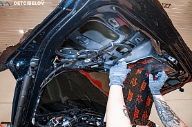 Шумоизоляция торпедо и колесных арок снаружи - за доплату.