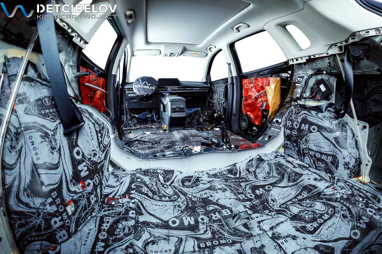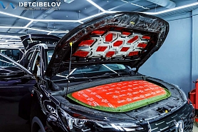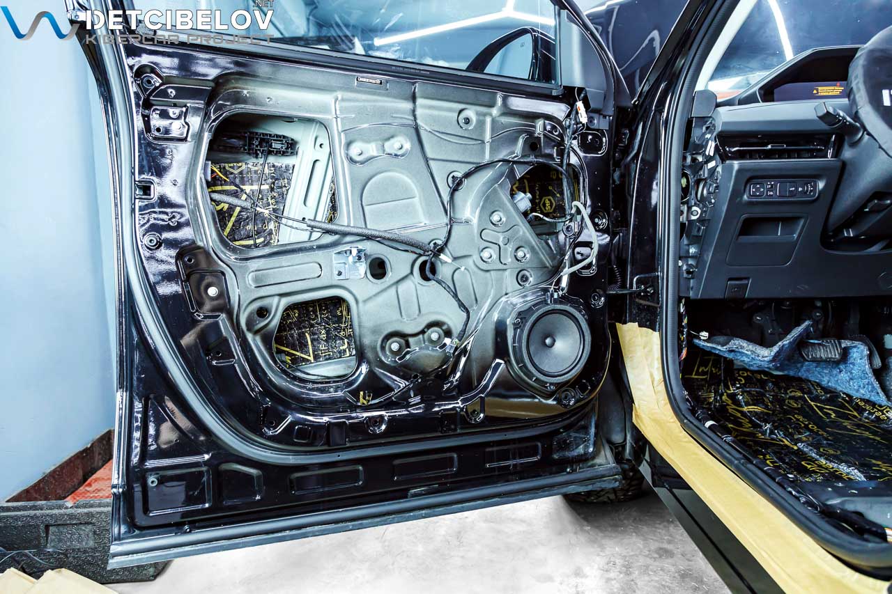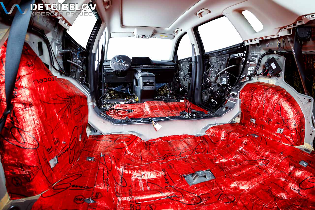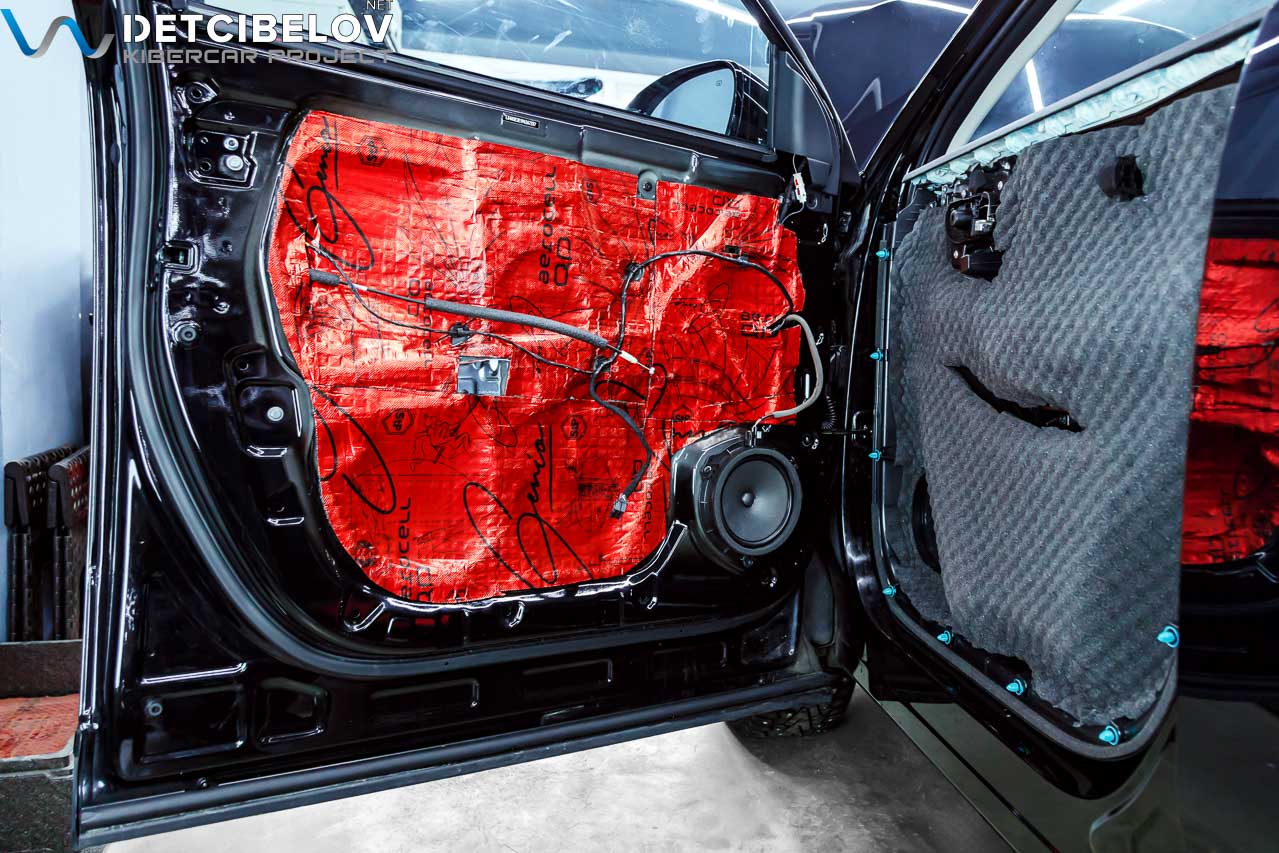 • Никаких компромиссов! Только топовые материалы последнего поколения от ТМ "Comfort mat" с максимальной эффективностью и максимальным количеством слоев. Также использование вибродемпфирующих материалов высокой жесткости с разогревом в печи и дополнительной напыляемой шумоизоляцией для колесных арок.