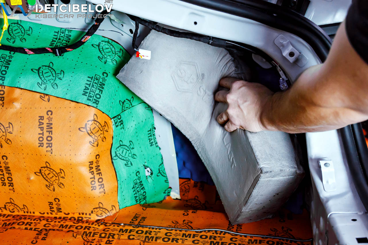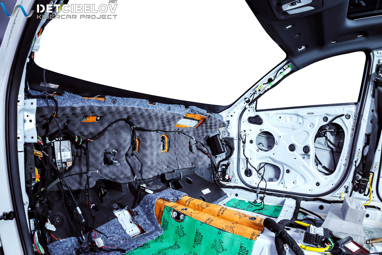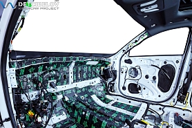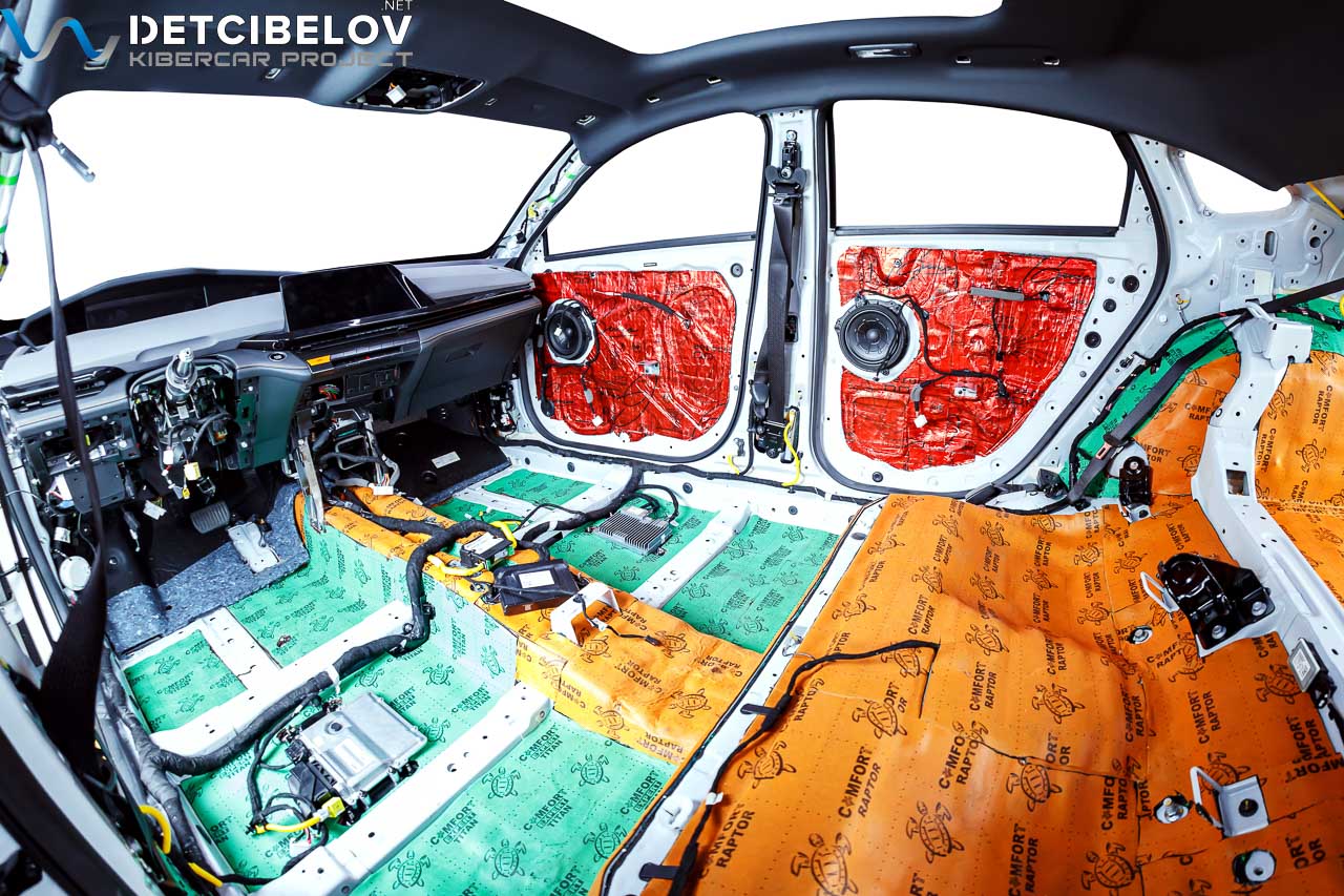 • Никаких компромиссов! Только топовые материалы последнего поколения от ТМ "Comfort mat" с максимальной эффективностью и максимальным количеством слоев. Также использование вибродемпфирующих материалов высокой жесткости с разогревом в печи и дополнительной напыляемой шумоизоляцией для колесных арок.