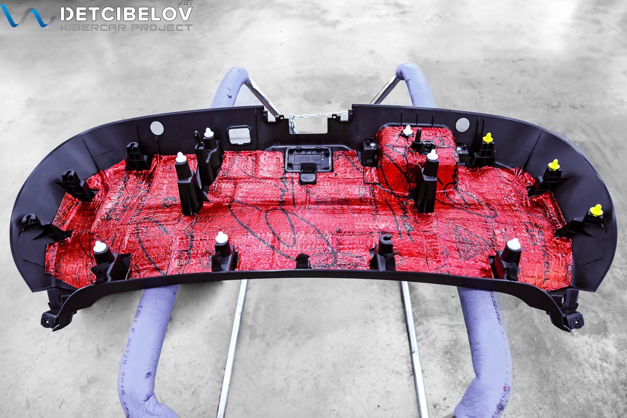 Следующим шагом демонтируем приборную панель, очищаем от пыли и загрязнений, обезжириваем и приступаем к шумо- и виброизоляции.