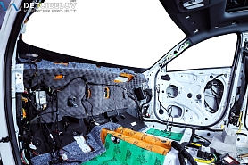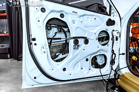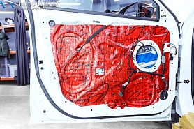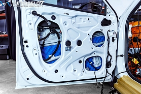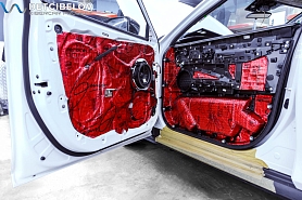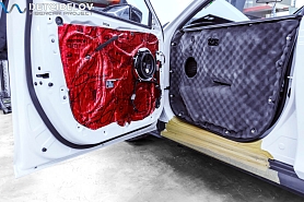 • Самая легкая шумоизоляция автомобиля от ведущих брендов. Она обеспечивает оптимальный результат при однослойной обработке кузова автомобиля. Материал обладает одновременно как шумо-, так и виброизоляционными свойствами, что позволяет укладывать материал в один слой, вместо двух, используемых при многослойной классической шумоизоляции автомобиля. Также мы дополнительно обрабатываем двери акустическим материалом для снижения скрипов и увеличения акустического комфорта.