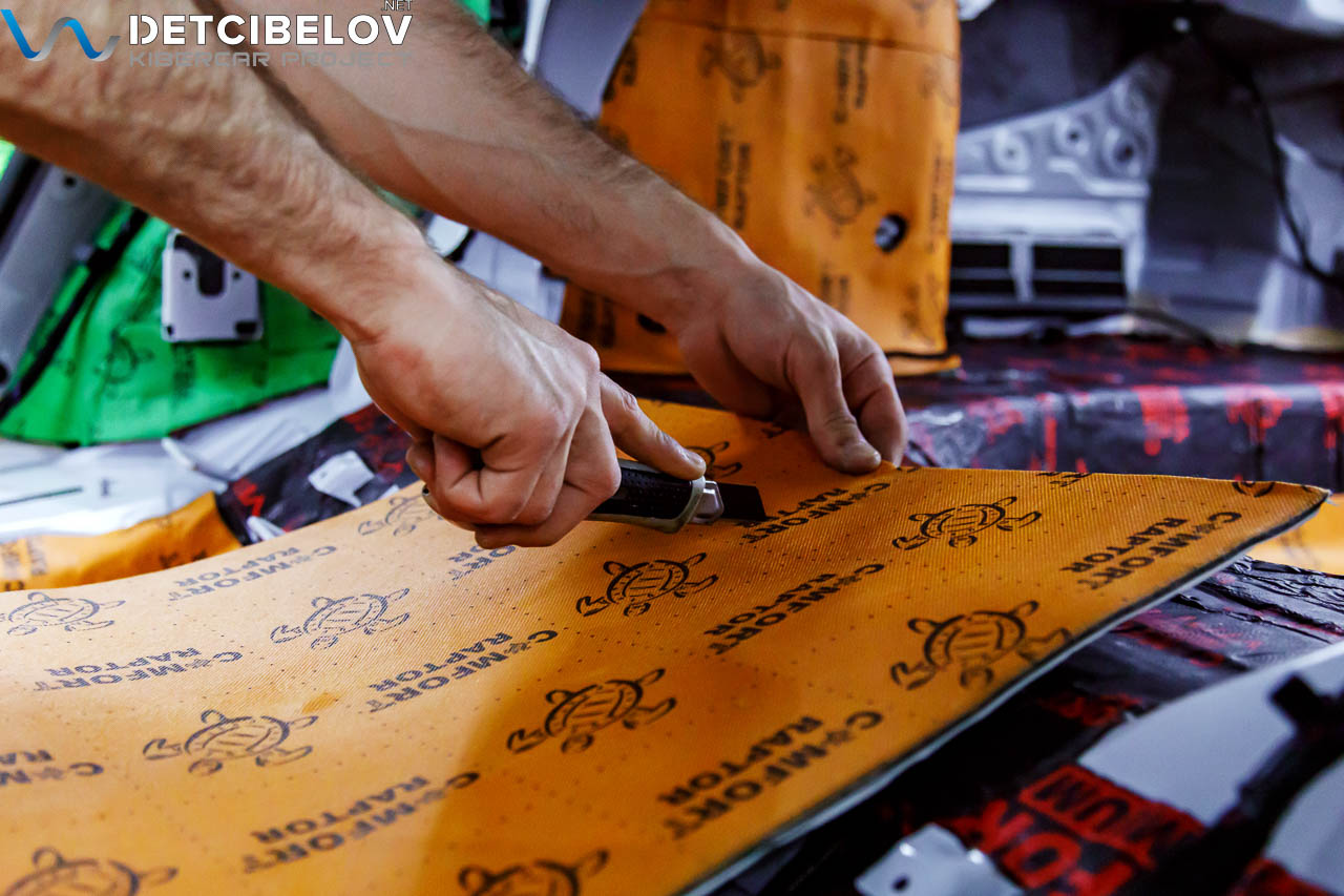 Технология нанесения — это не только последовательность нанесения слоев вибро и шумоизоляционных материалов, но и качество их нанесения. Если сделать неправильный монтаж, пропустить важные места, наклеить с зазорами и т.д., можно получить совсем не тот результат, отличающийся в несколько децибел в сравнении с правильным монтажом материалов. Вроде бы и материалы одни и те же и количество слоев одинаковое, но результат может быть совершенно разный.