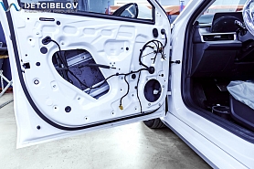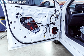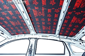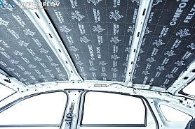 • Самая легкая шумоизоляция автомобиля от ведущих брендов. Она обеспечивает оптимальный результат при однослойной обработке кузова автомобиля. Материал обладает одновременно как шумо-, так и виброизоляционными свойствами, что позволяет укладывать материал в один слой, вместо двух, используемых при многослойной классической шумоизоляции автомобиля. Также мы дополнительно обрабатываем двери акустическим материалом для снижения скрипов и увеличения акустического комфорта.