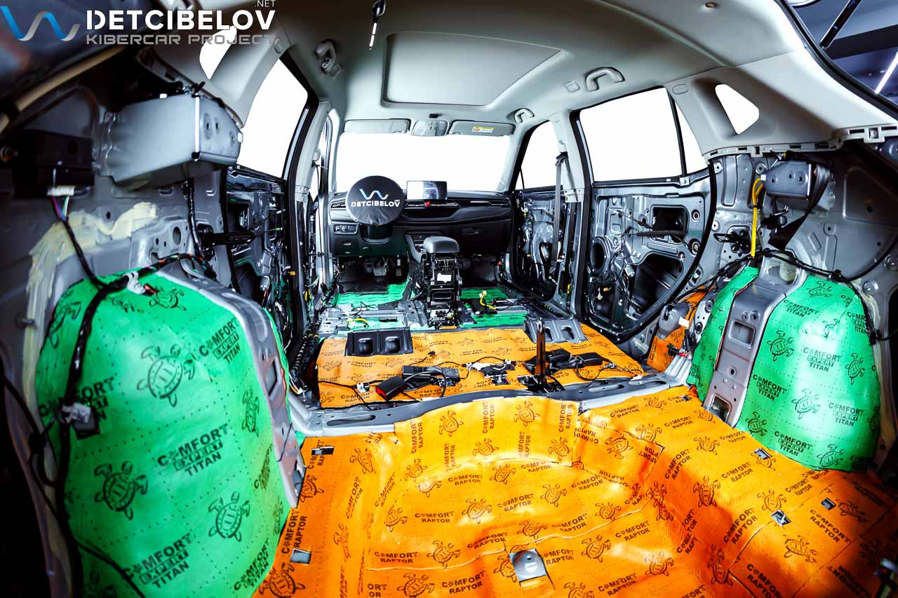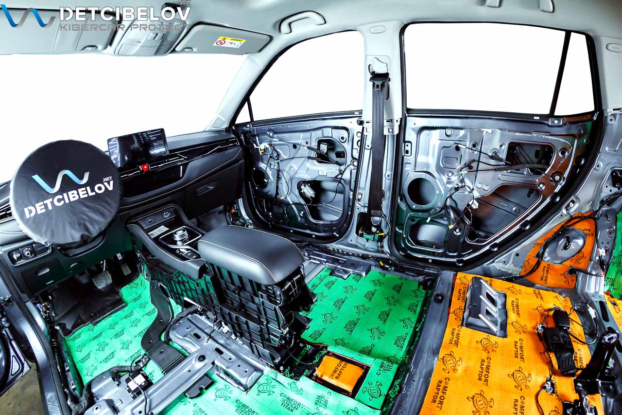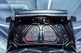 • Никаких компромиссов! Только топовые материалы последнего поколения от ТМ "Comfort mat" с максимальной эффективностью и максимальным количеством слоев. Также использование вибродемпфирующих материалов высокой жесткости с разогревом в печи и дополнительной напыляемой шумоизоляцией для колесных арок.